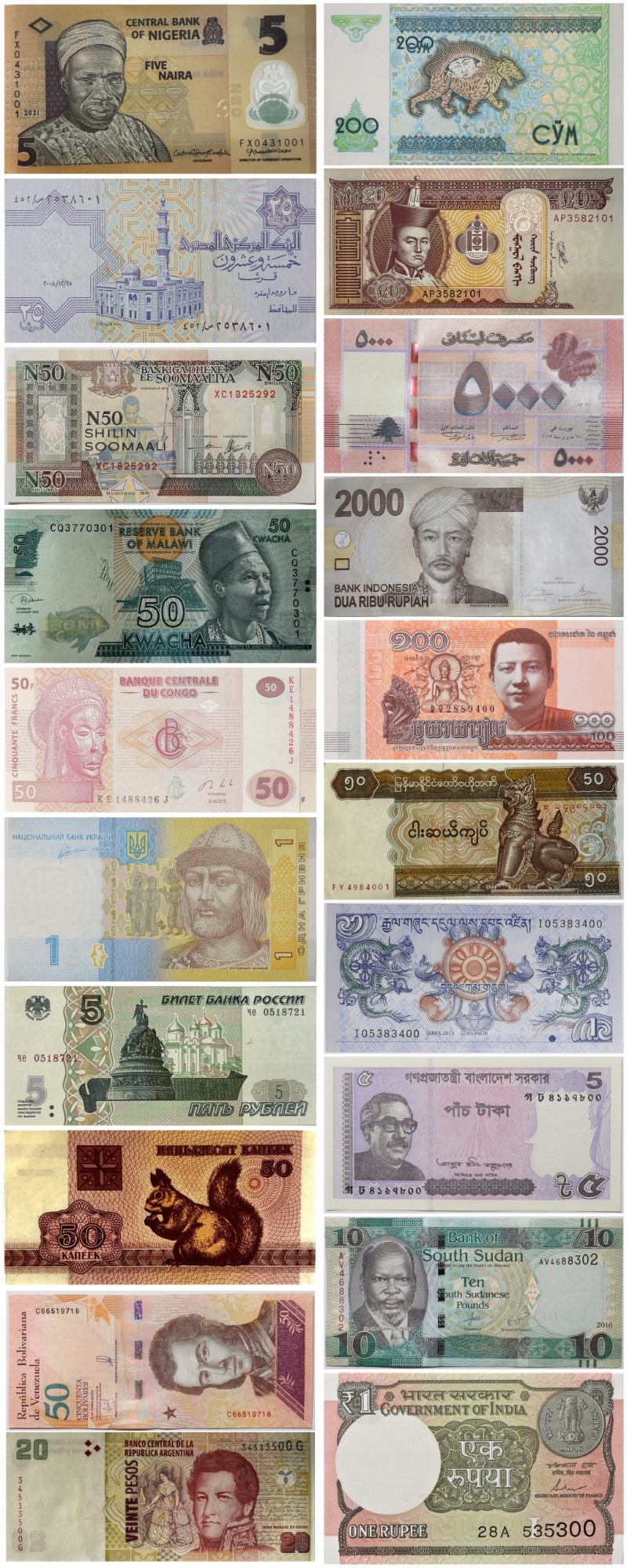 Набор из 20 банкнот мира - состояние UNC + бесплатный футляр для банкнот