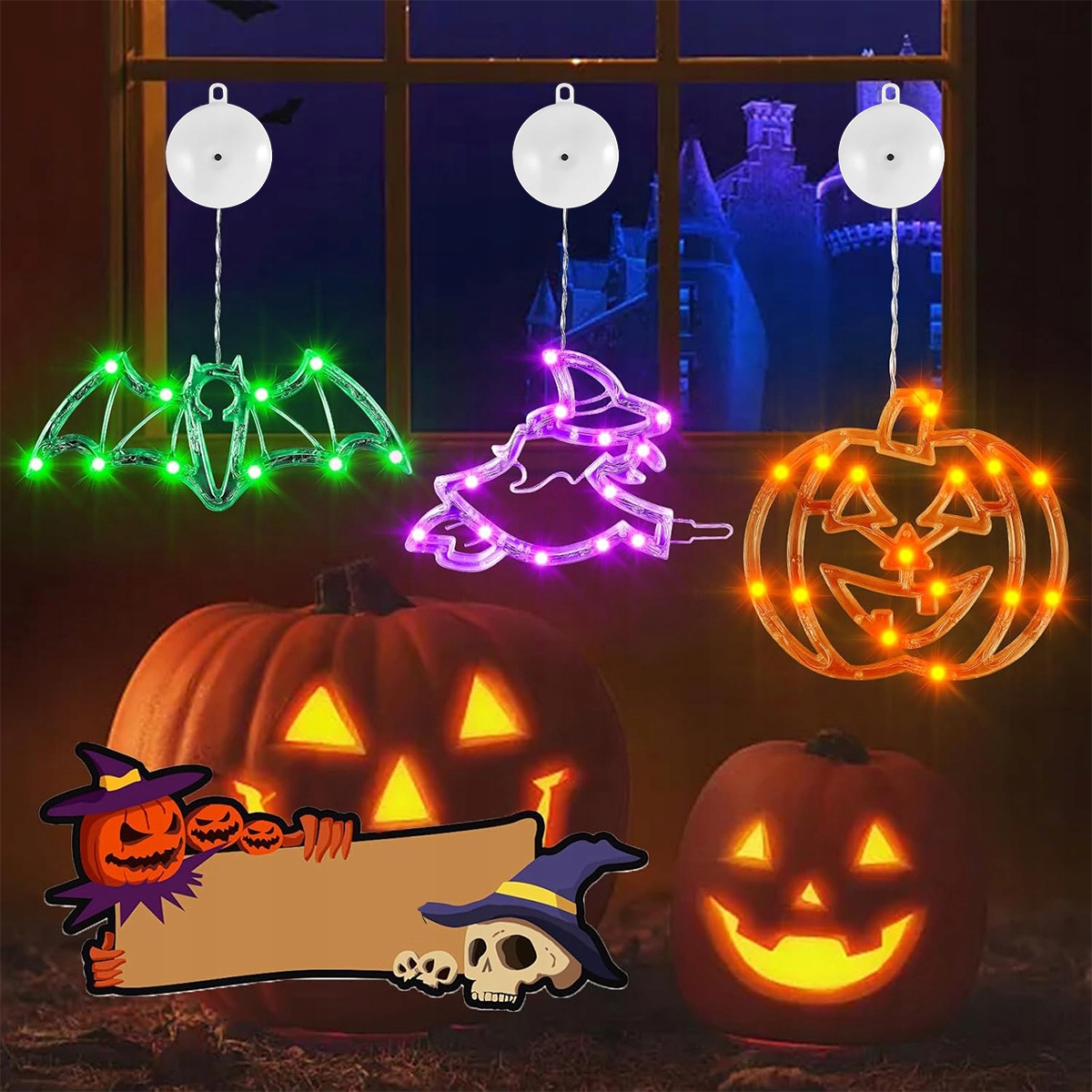 Набор из 3 украшений для Хэллоуина, светодиодные оконные светильники на присосках, оконные светильники в виде тыквы и шляпы ведьмы, декоративные оконные светильники, декоративные оконные светильники на батарейках