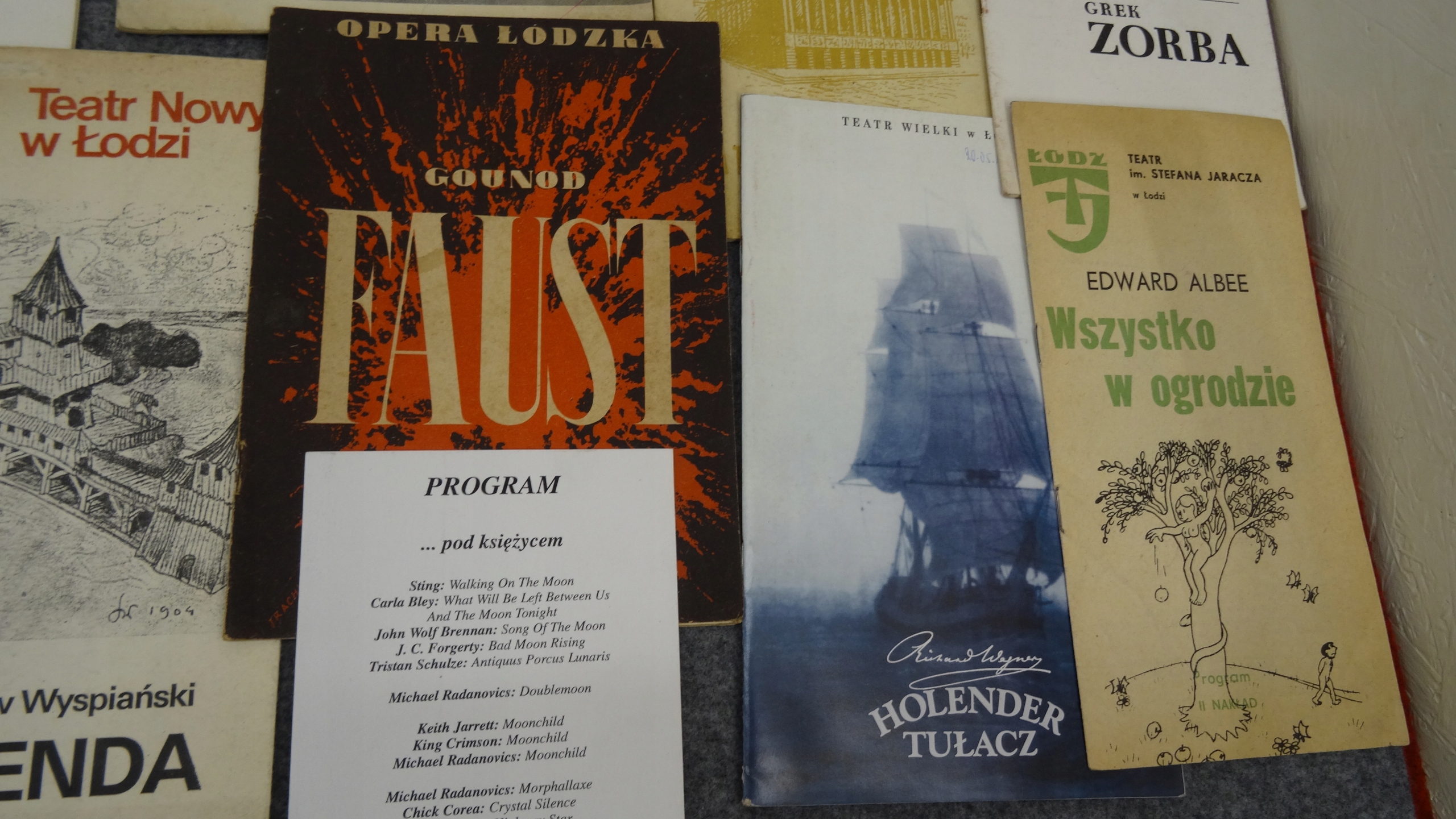 Набор из 30 репертуаров, программы в основном со сцен лодзинского театра. С 1960-х по 1990-е годы. Внутри некоторых репертуаров есть дополнительная реклама спектаклей и билетов, не показанная на фотографиях.