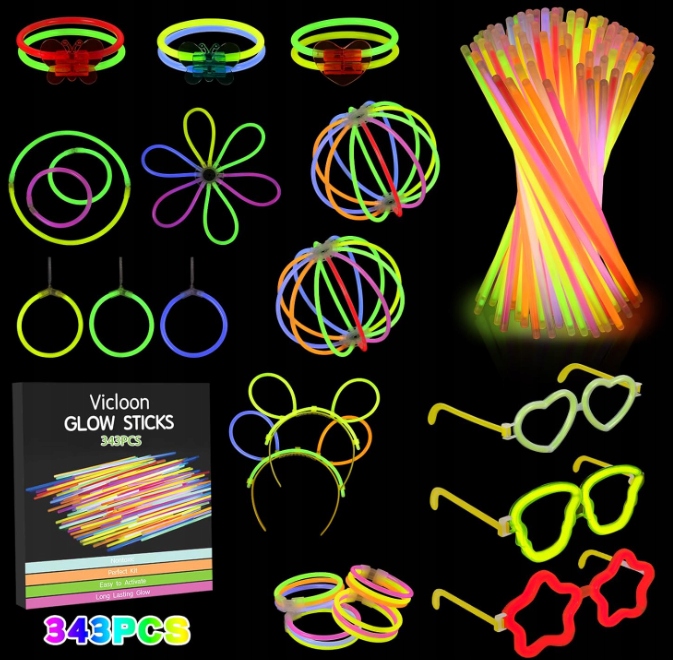 В этой коробке светящихся палочек содержится более 343 предметов, включая: