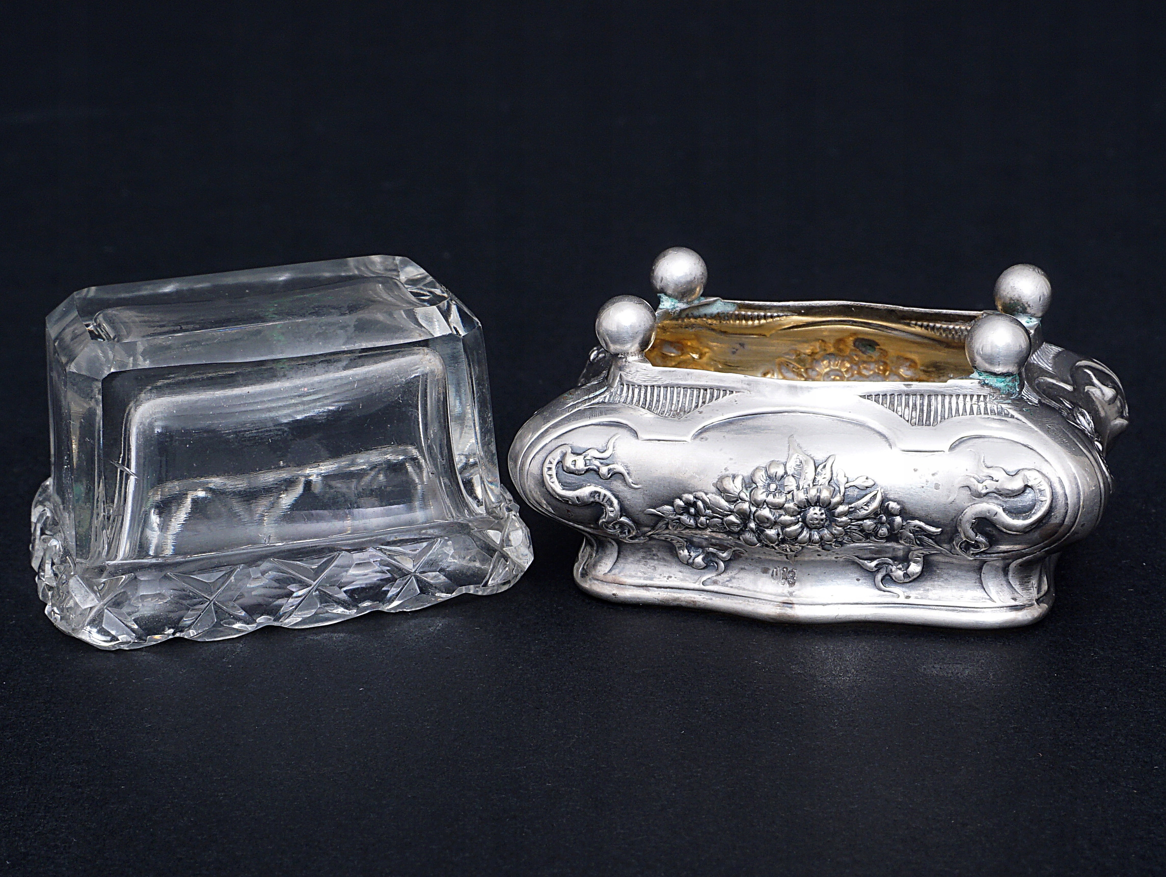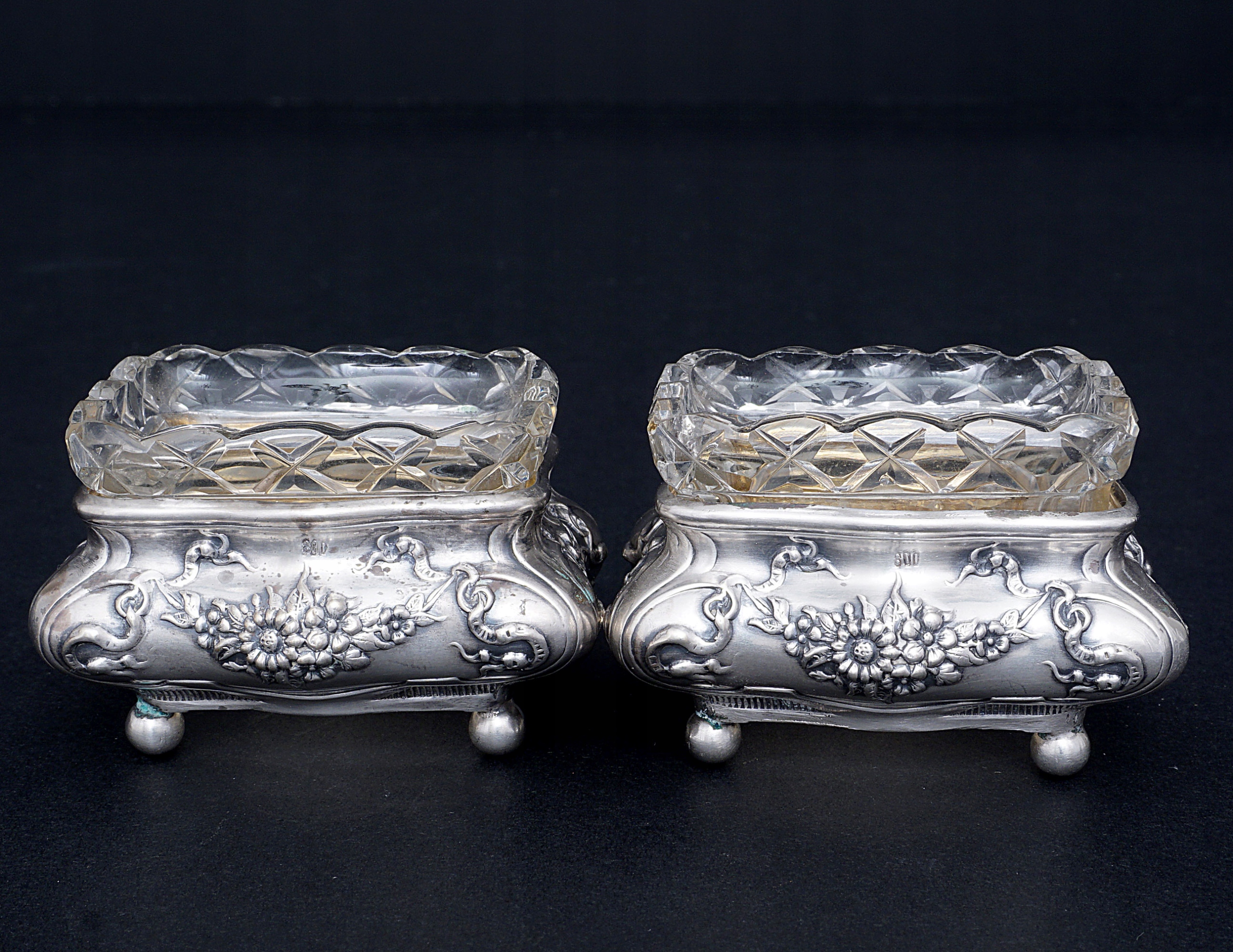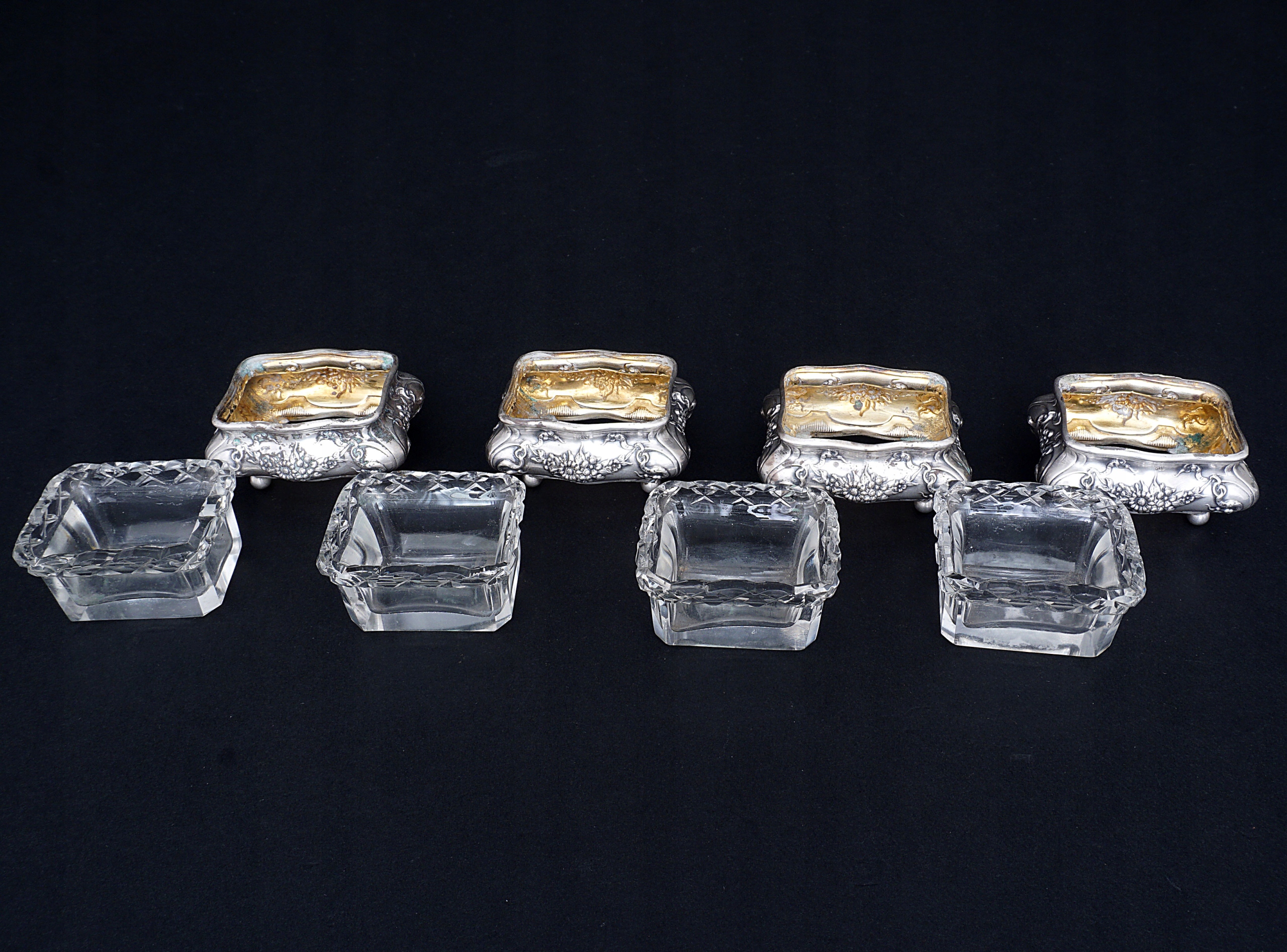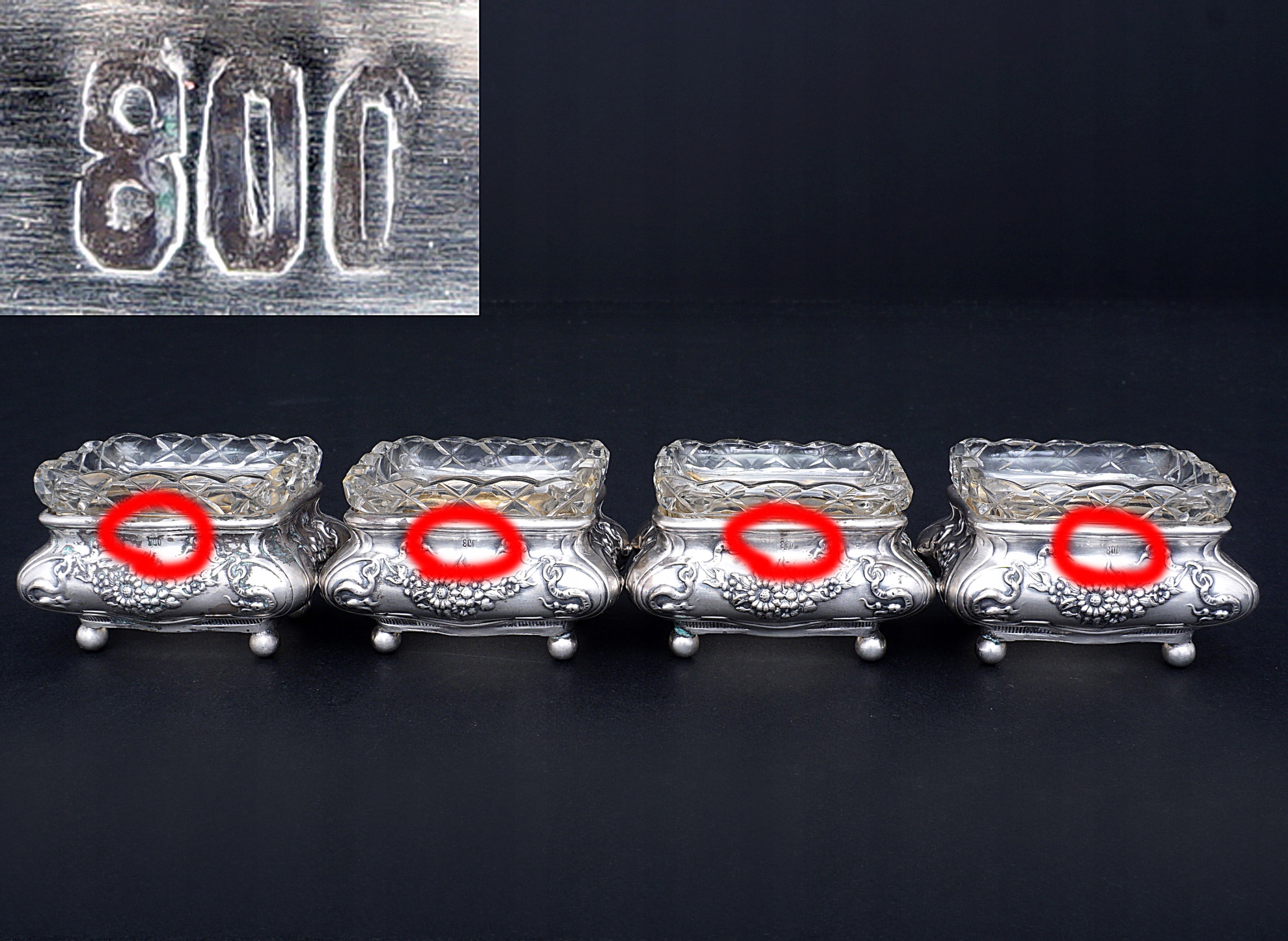 Набор из четырех соленков, изготовленных из 800/1000 серебра.