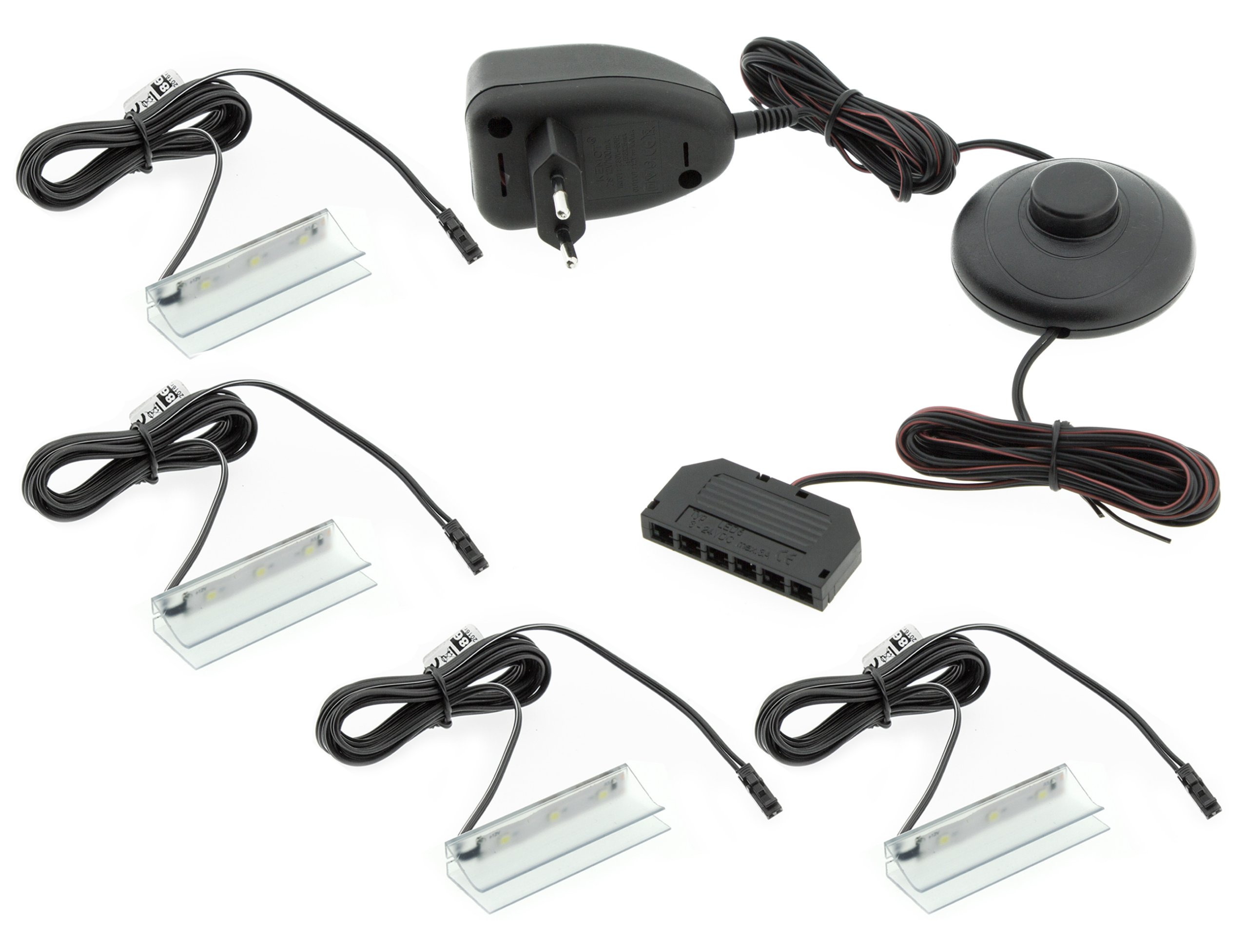 Набір із 4 світлодіодних ПВХ кліпсів для скляної полиці + блок живлення