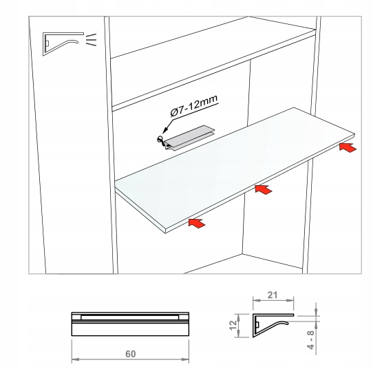 Такой вид освещения в основном используется для освещения стеклянных полок в витринах, витринах, барах, шкафах, столах, витринах и т.п. Рекомендуемая толщина стекла 4-8 мм.