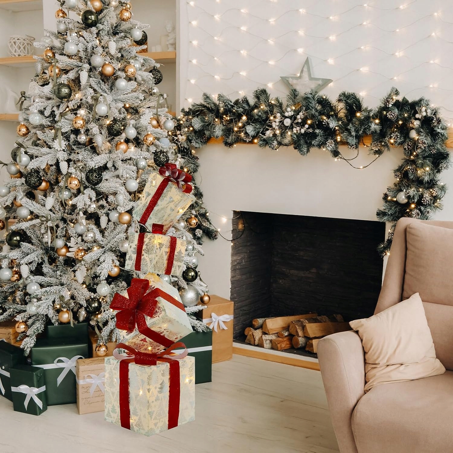 НАБОР ИЗ 4 СВЕТОДИОДНЫХ РОЖДЕСТВЕНСКИХ ДЕКОРАТИВНЫХ КОРОБОК