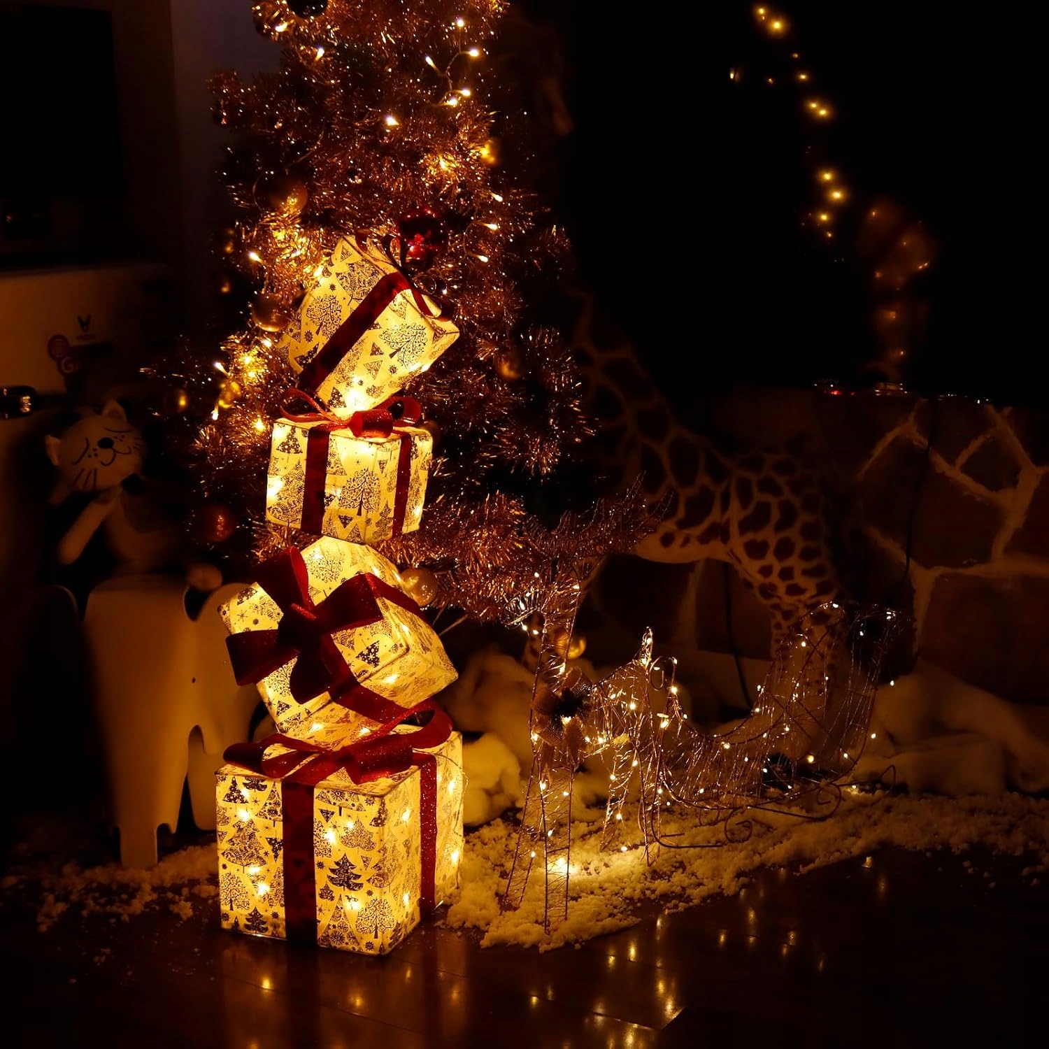 Эти красиво оформленные светодиодные подарочные коробки подходят для использования в помещении.