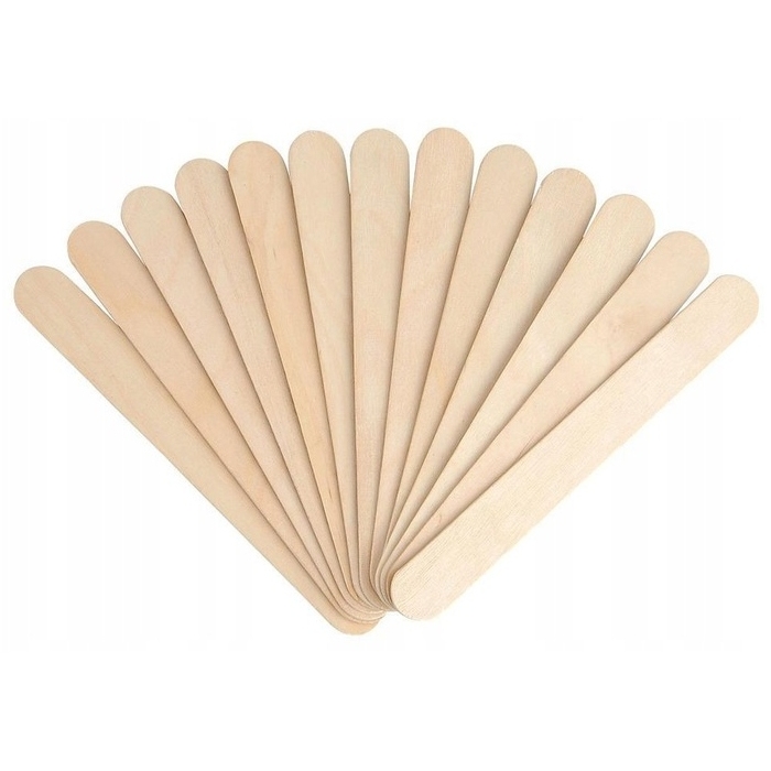 Используются одноразовые деревянные лопаточки для нанесения теплого твердого воска без полос.