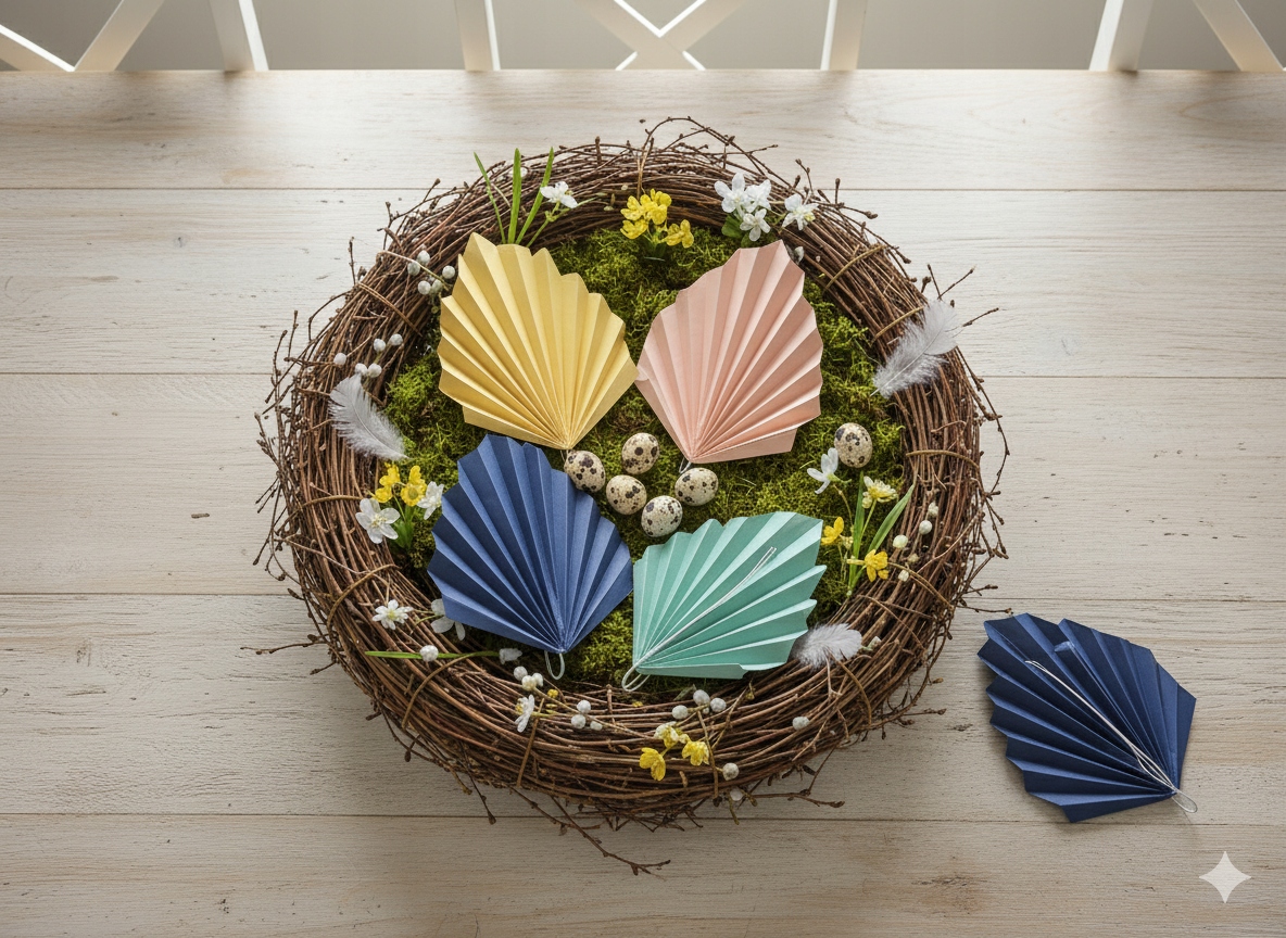 - Уникальная фактура: Украшения выполнены из бумаги в виде точной гармошки, что придает им эффект объемного веера или стилизованного листа/пера.
