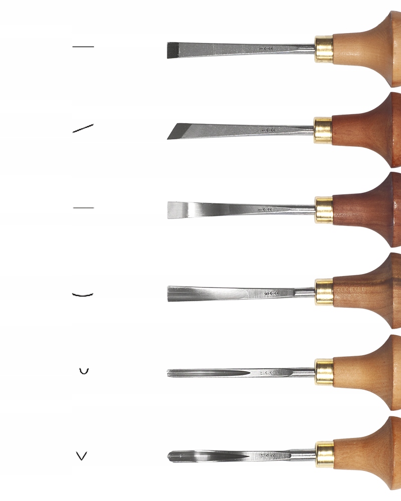 Набор из 6 стамесок для гравюры по дереву и барельефов - PFEIL