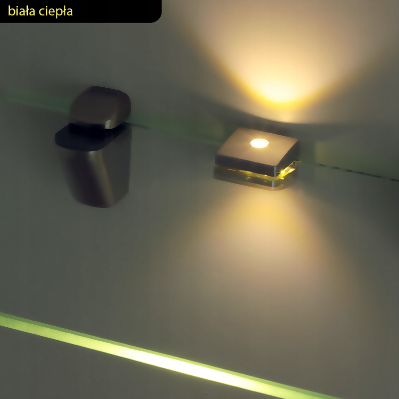 Светодиодный зажим ZETA3S — эффективный способ подсветки поверхности (края) стекла с помощью зажима с вклеенной внутрь светодиодной лентой и двумя светодиодами, светящими вверх и вниз по стеклянной полке.