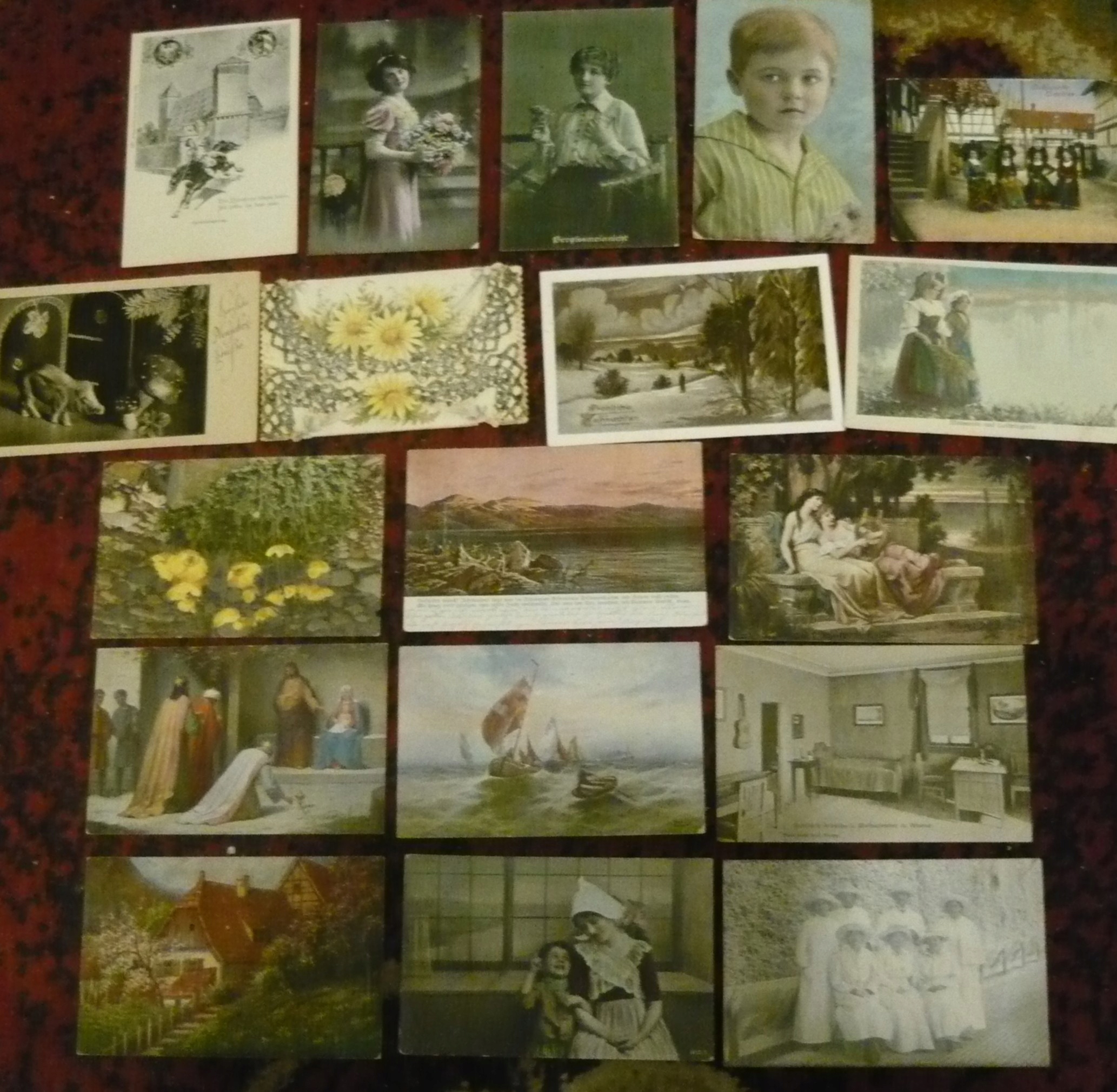 Набор из 73 открыток, подавляющее большинство из которых были немецкими, отправленных (около 90%), как правило, до конца Первой мировой войны (1918 г.)