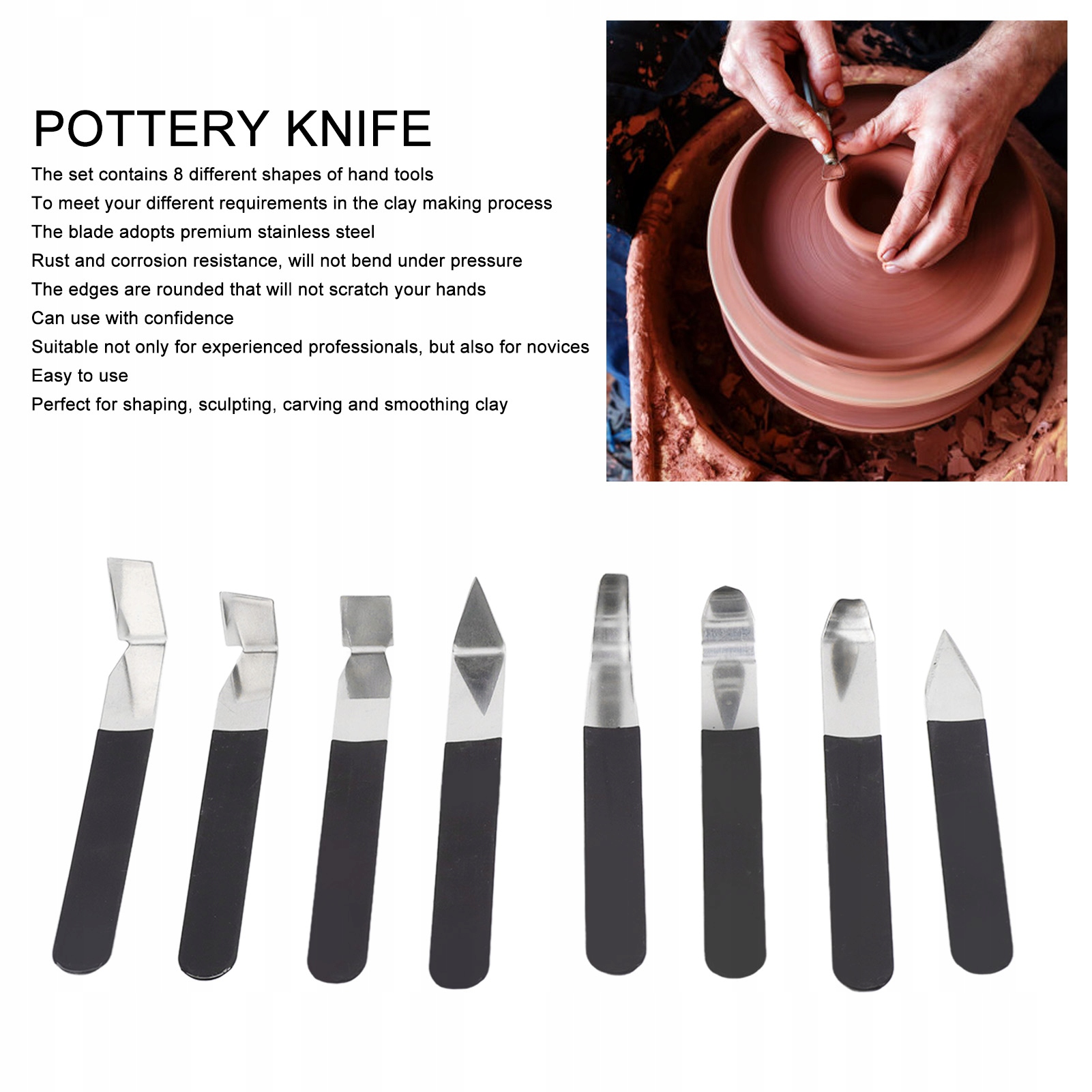 Набор из 8 ножей для резьбы по глине с закругленным стальным лезвием KM