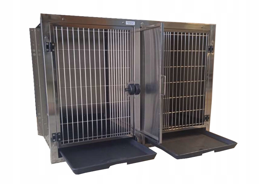 Клетки оснащены пластиковыми ящиками, которые можно свободно выдвигать для чистки, не открывая клетки. . Клетки имеют съемные полы из сварных прутков нержавеющей стали. Дверцы клетки оснащены магнитной системой, которая позволяет быстро закрыть клетку и в то же время предотвращает ее открытие собакой или другим животным, запертым внутри клетки.
