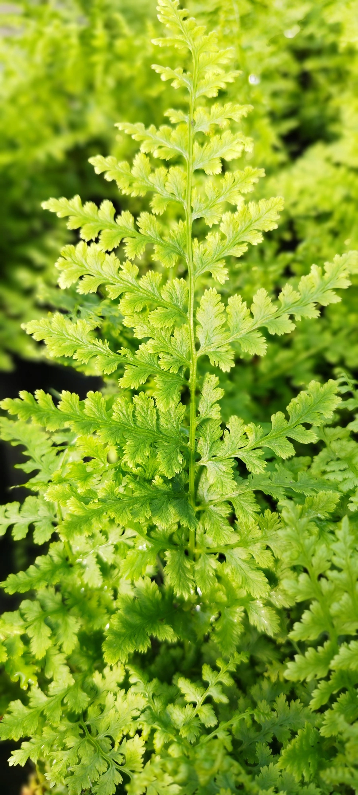 папоротник растет до 50-60 см. Это редкий папоротник с очень оригинальным цветом. Ее листья обесцвечивают от зеленого оранжевого до апельсина.