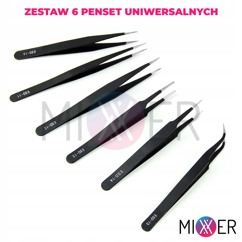 Набір із шести антистатичних металевих пінцетів