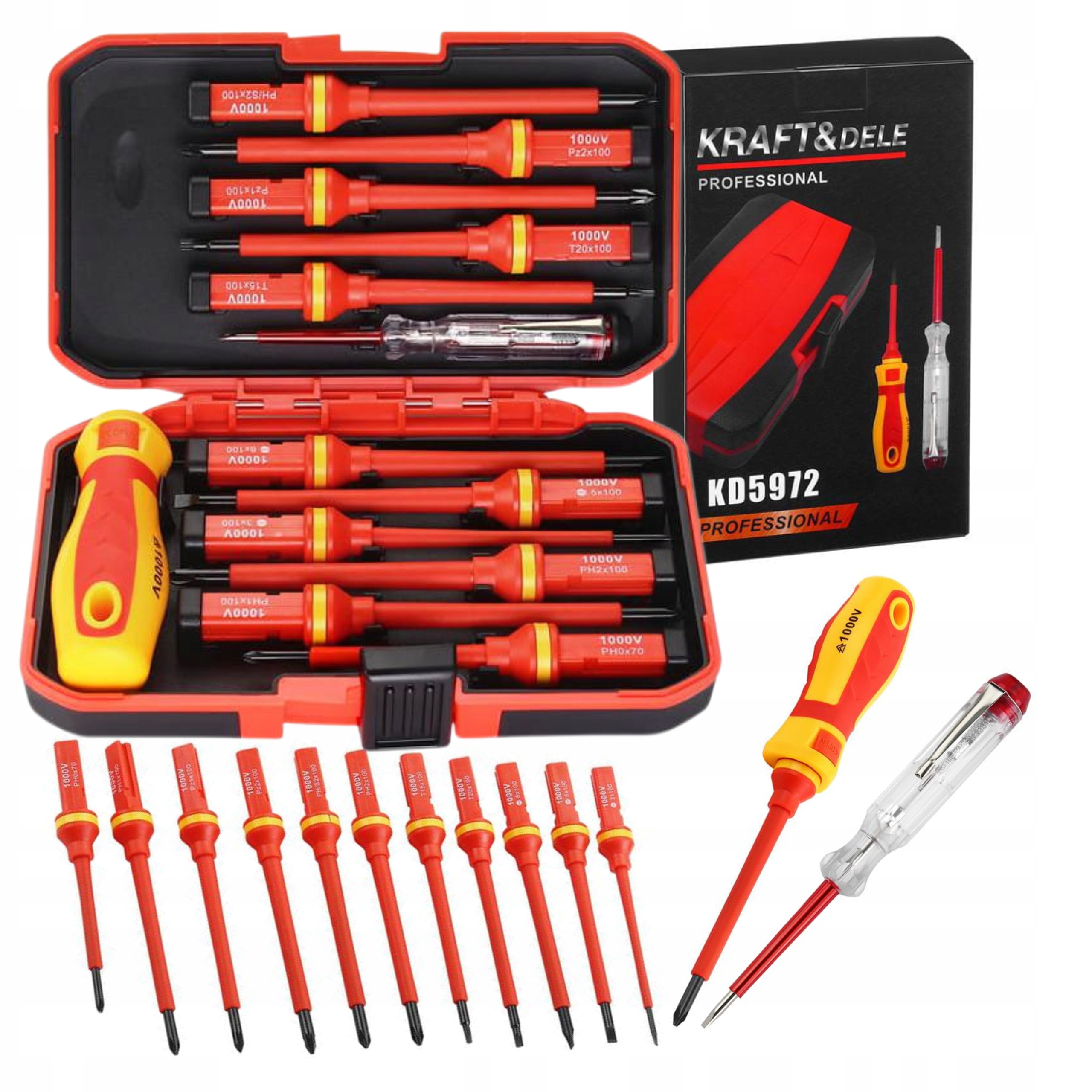 НАБОР ИЗОЛИРОВАННЫХ ОТВЕРТОК, 14 ЭЛЕМЕНТОВ. КОРПУС VDE 1000 В Kraft&Dele KD5972