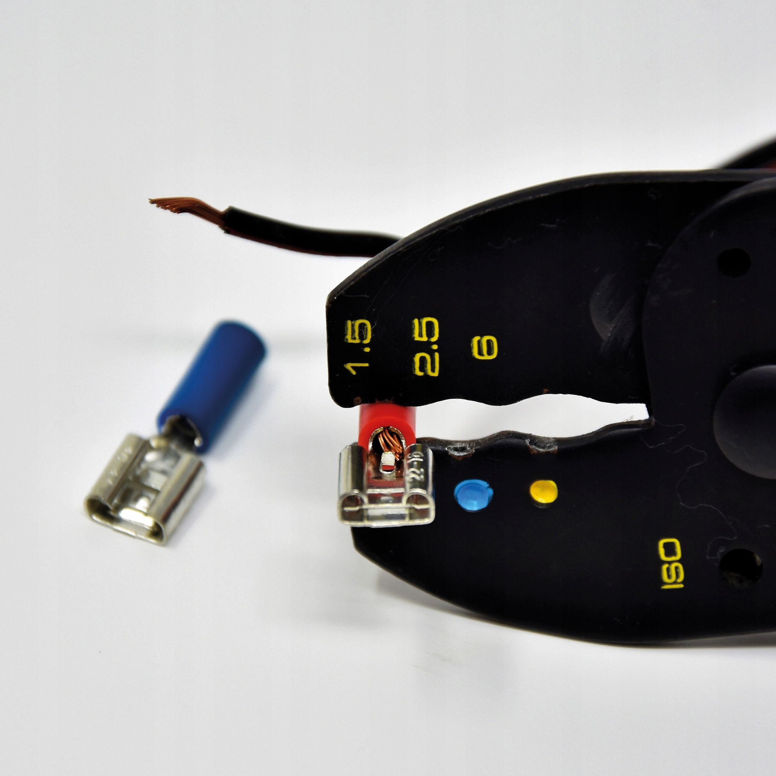 ✔️ лопаточный - в трех стандартных цветах (красный, синий, желтый), соответствующих диапазонам сечений проводов.