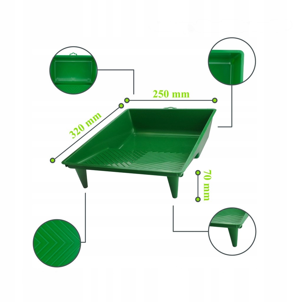 Жесткие, устойчивые ножки предотвращают раскачивание лотка во время использования, позволяя работать, не опасаясь пролить краску.