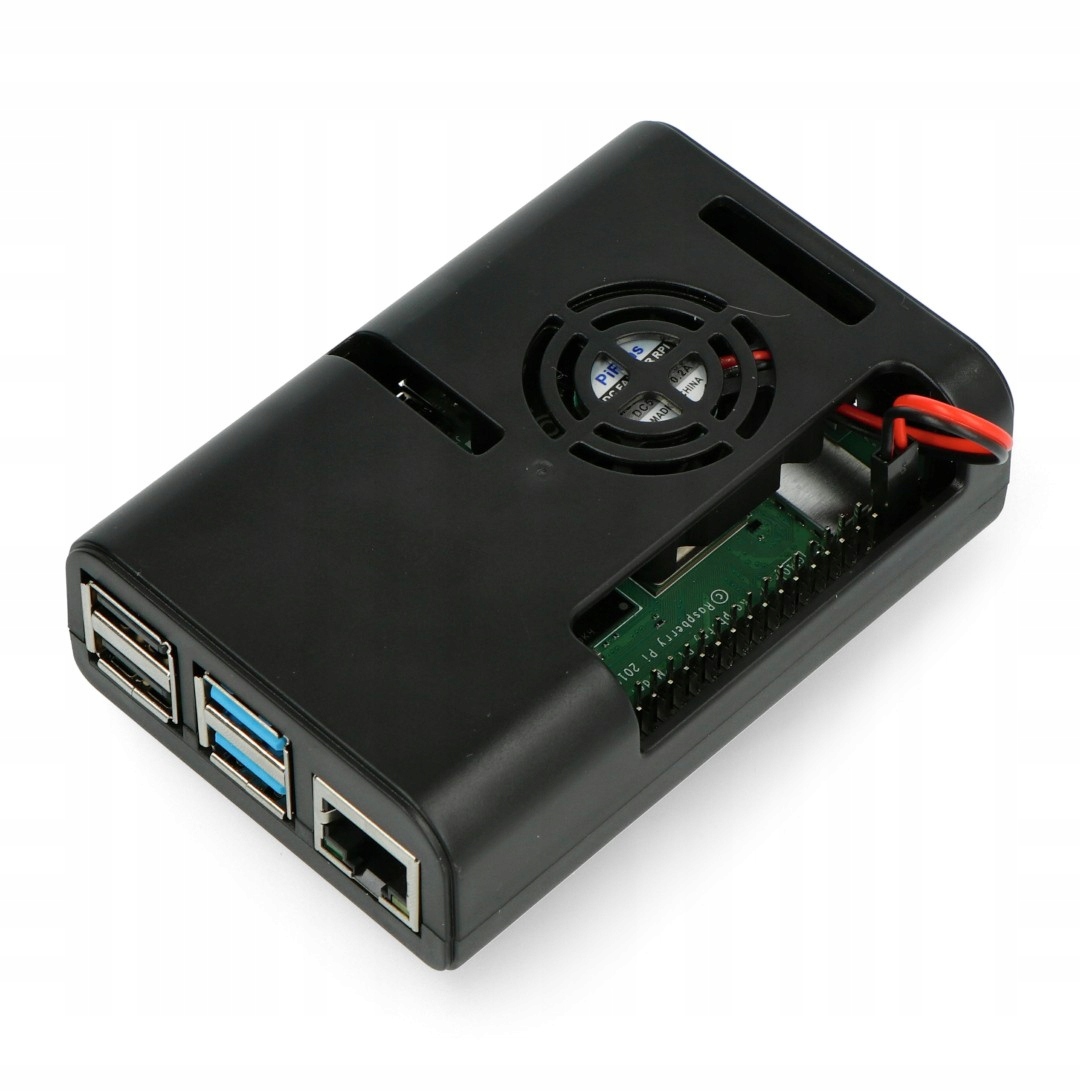 - Черный корпус JustPi с вентилятором для Raspberry Pi 4B - позволяет активно охлаждать миникомпьютер благодаря вентилятору, открывает доступ к аудио, видео, карте microSD, питанию и Разъемы GPIO