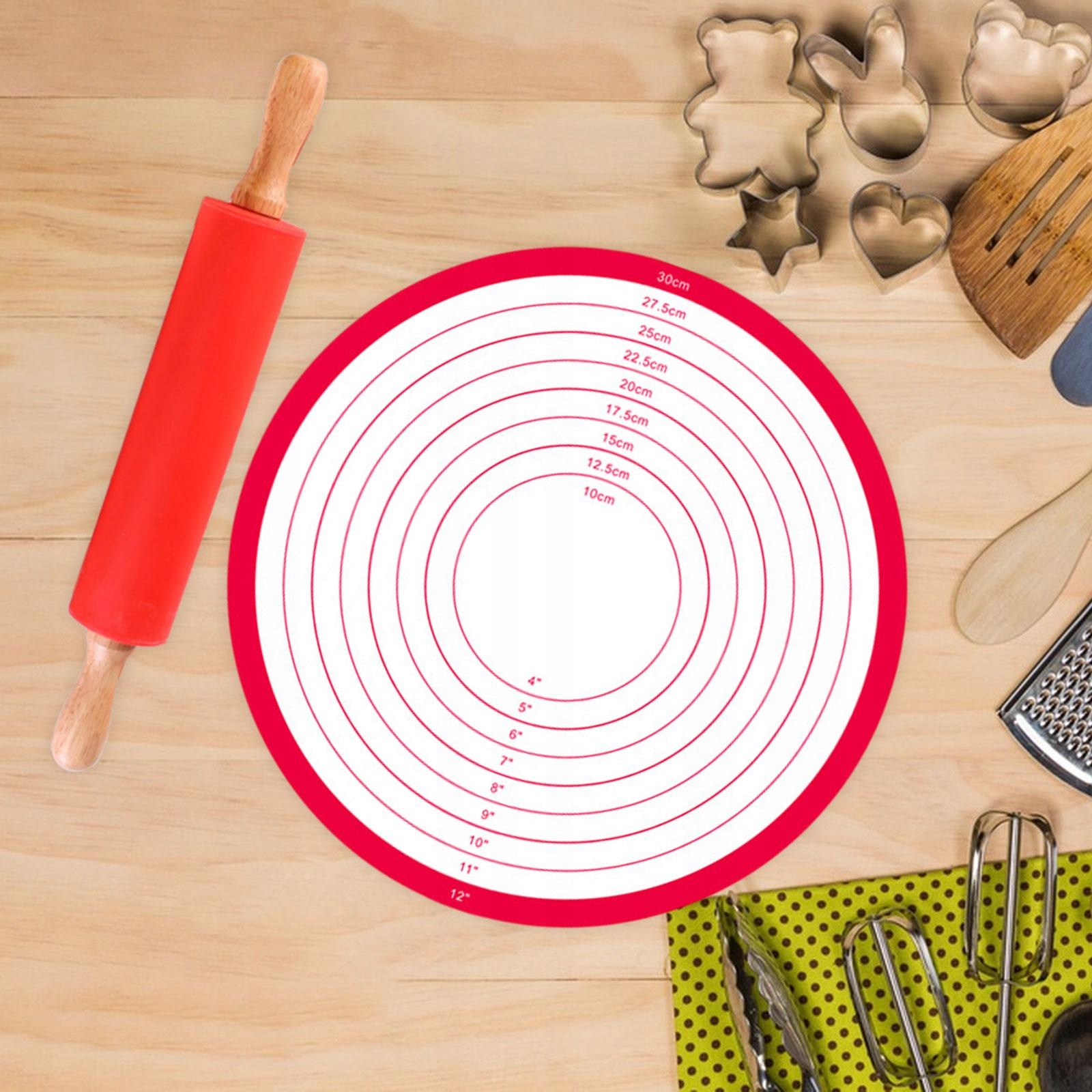 Набор скалок и антипригарных ковриков для теста для выпечки, 30х4 см, с деревянной ручкой