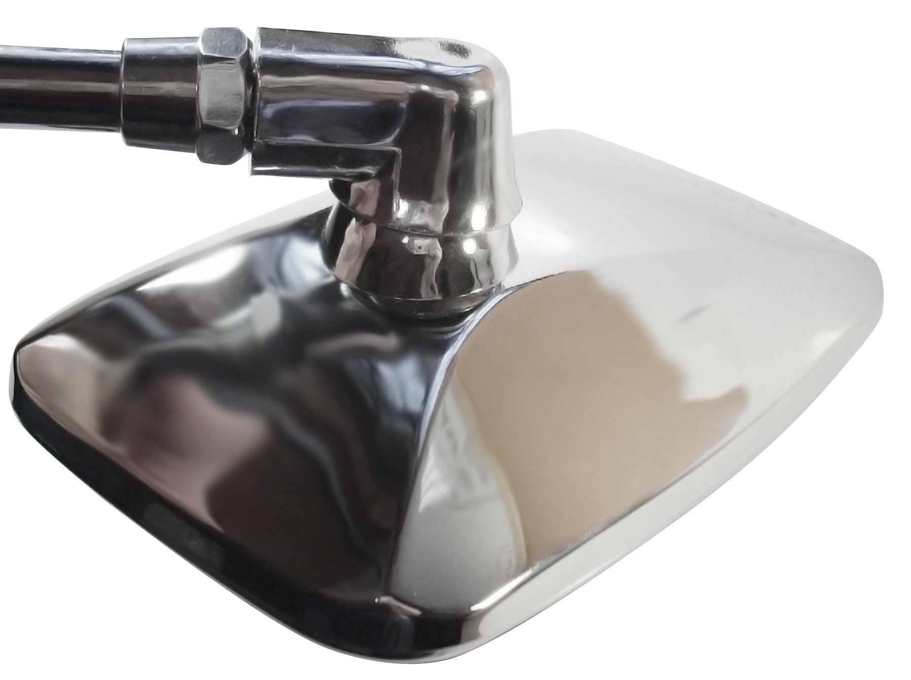Зеркальная головка и соединение изготовлены из прочного пластика, стальной ноги. Все зеркало покрыто толстым слоем хрома. Само стекло амортизируется дополнительным резиновым обычаем