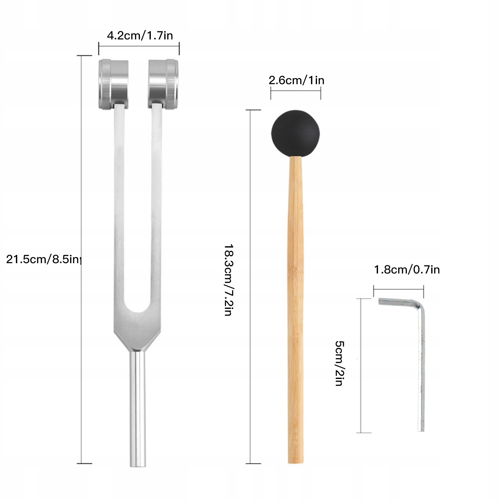 1. Регулируемое звуковое колесо: этот камертон имеет регулируемое звуковое колесо. Вы можете использовать шестигранный ключ для регулировки частоты вибрации.