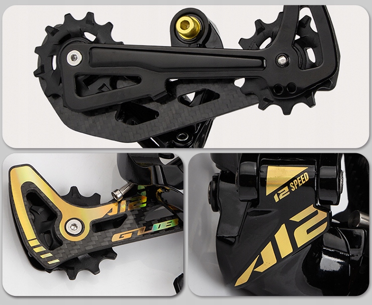 Задний переключатель: 12-скоростной задний переключатель с карбоновой направляющей пластиной, конструкция заднего переключателя Shadow, направляющее колесо увеличенного размера, совместимо максимум с маховиком 52 зуб.