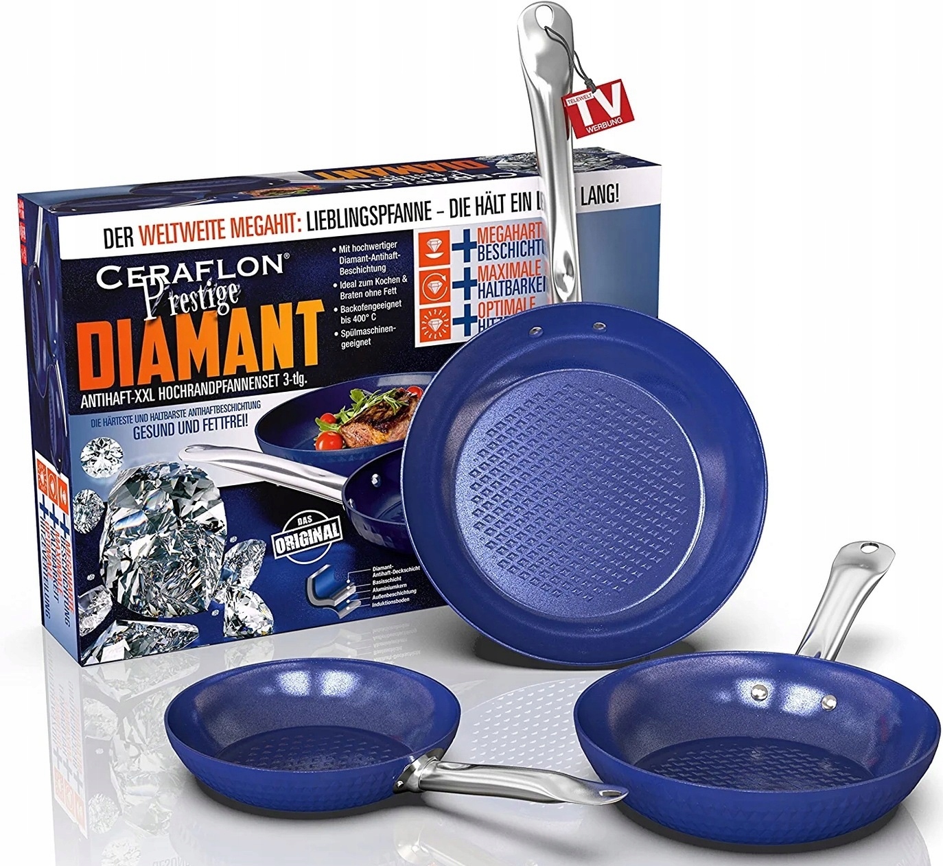 Набор сковородок Ceraflon , из трех предметов, с антипригарным покрытием «голубой ромб».