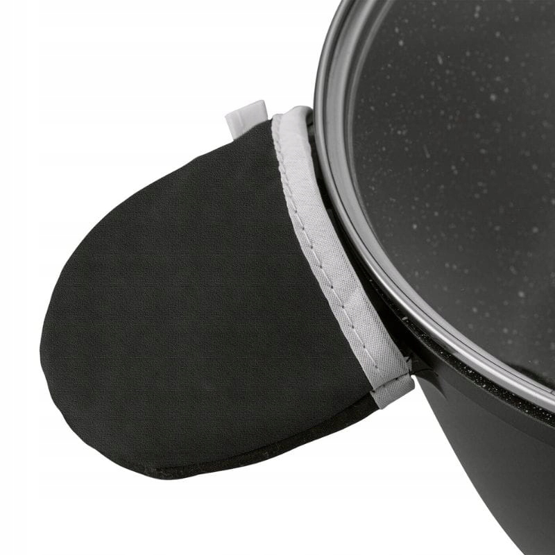Бакелитовая ручка кастрюли и сковороды, постепенно нагреваясь, обеспечивает комфорт использования и защищает от ожогов. Кроме того, литые ручки и 2 тканевых чехла повышают безопасность при переноске кастрюль.