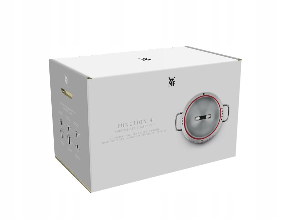 Набор из 4 кастрюль WMF FUNCTION. Благодаря функциональной крышке мы можем навсегда забыть об отдельном сосуде для процеживания. Кастрюли изготовлены из нержавеющей стали Cromargan®, запатентованной сто лет назад. Сочетание 18% хрома и 10% никеля делает кастрюли очень прочными и устойчивыми к царапинам и пищевым кислотам. Полированная поверхность будет оставаться блестящей долгое время. Посуду можно смело мыть в посудомоечной машине.