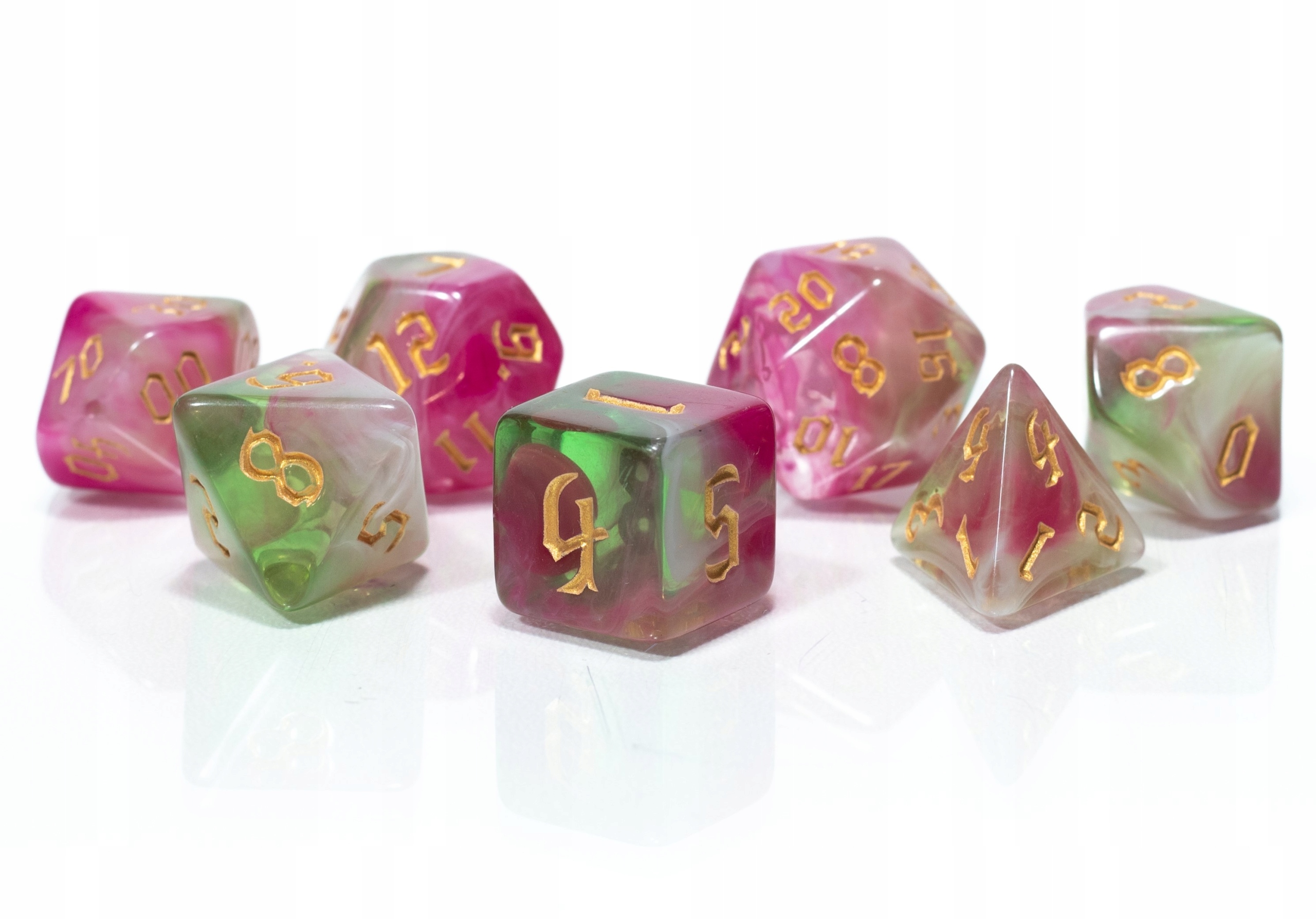 Набор игральных костей, то есть семь высококачественных игральных костей. Благодаря соответствующему балансу ими очень удобно пользоваться.