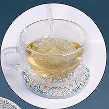 Подставки Amazy Ceramic - набор из 6 штук, круглые, декоративные подставки в стиле бохо с керамической поверхностью и пробковым дном, для стаканов, кружек и кружек - нескользящие, устойчивые к высоким температурам