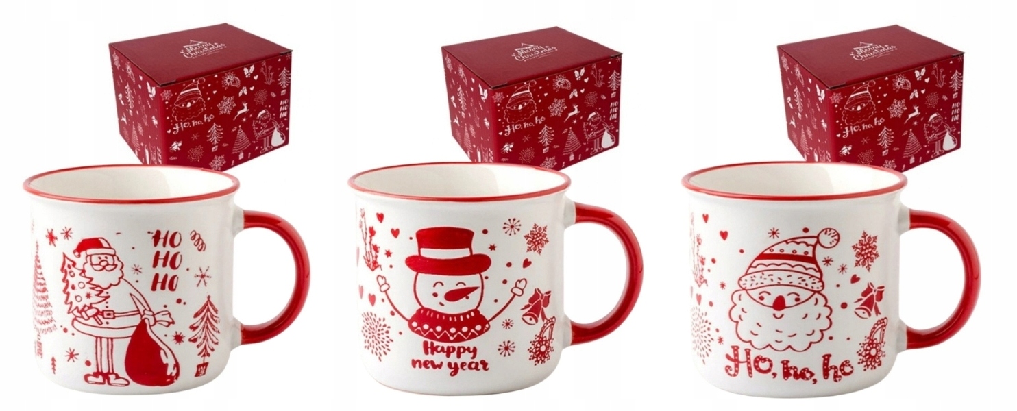 НАБОР КЕРАМИЧЕСКИХ РОЖДЕСТВЕНСКИХ КРУЖЕК, 3 ШТ. X 350 МЛ + ПОДАРОЧНЫЕ КОРОБКИ