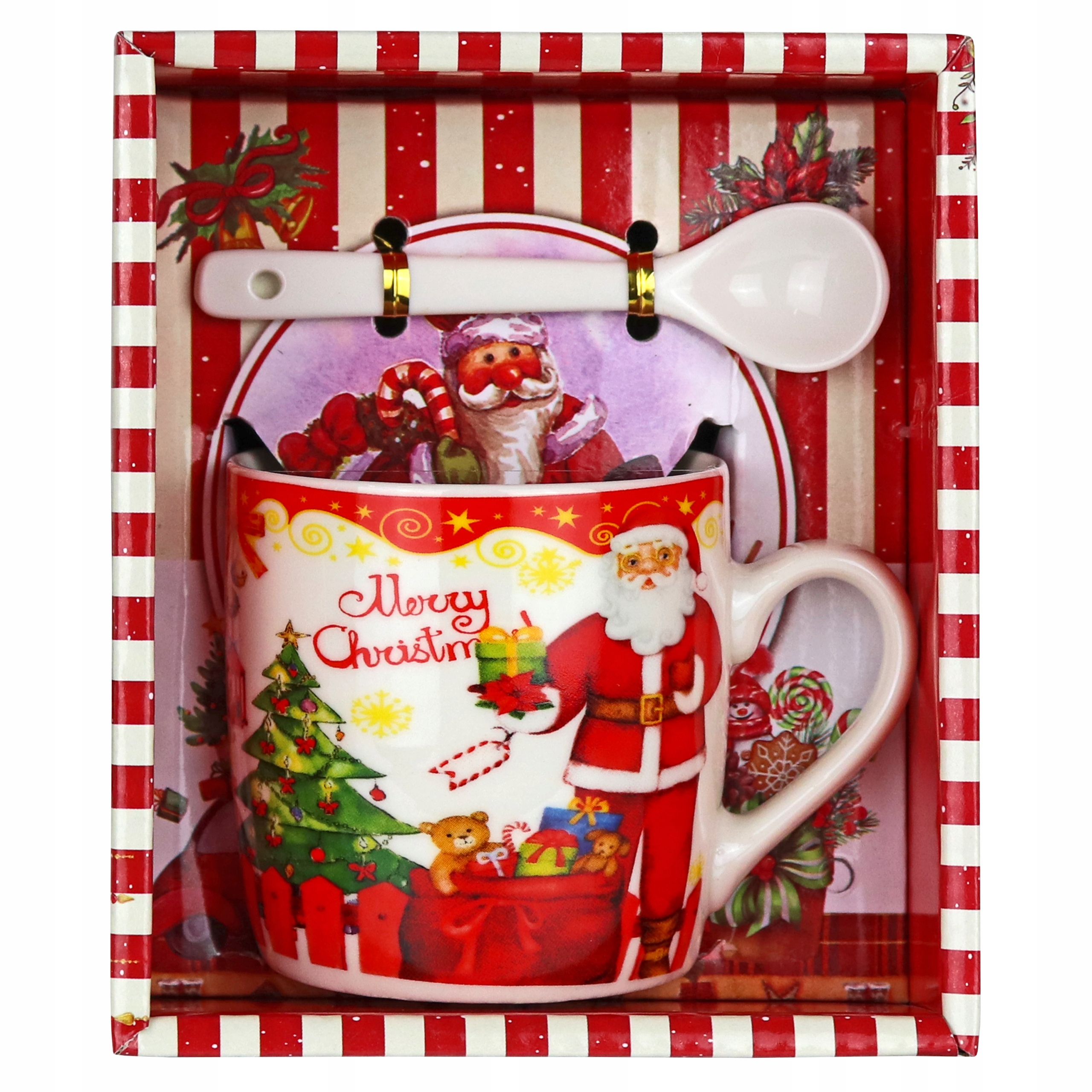 НАБОР КЕРАМИЧЕСКОЙ РОЖДЕСТВЕНСКОЙ КРУЖКИ С ЛОЖКОЙ РОЖДЕСТВЕНСКИЙ ПОДАРОК САНТА