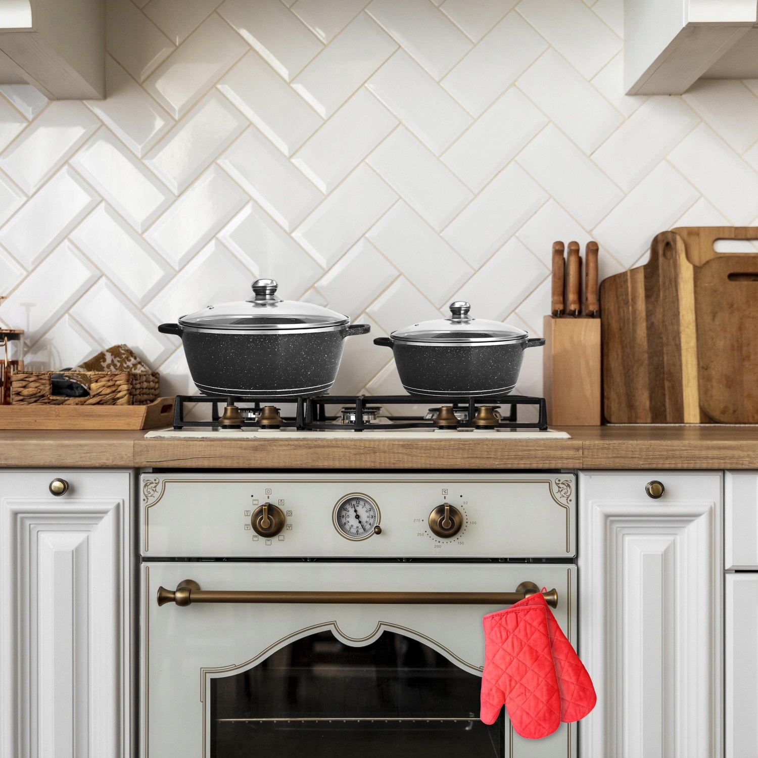 ✔ Набор оснащен многочисленной безопасностью, , такими как эргономичные ручки , устойчивые к высоким температурам , что гарантирует безопасность использования. Кухня