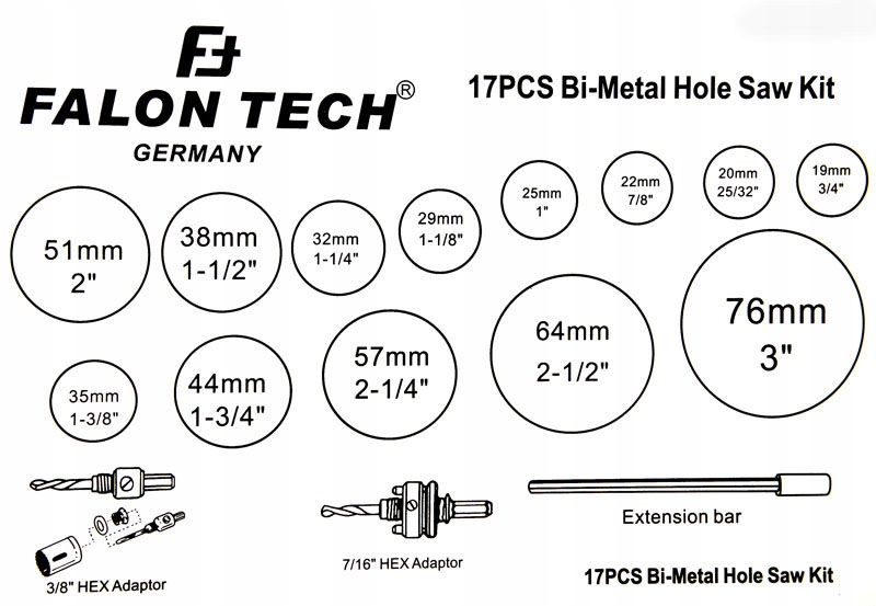 Просматривая «НАБОР КОЛЬЦЕВЫХ ОТВЕРСТИЙ ДЛЯ МЕТАЛЛА BI-METAL КОЛЬЦЕВАЯ ПИЛА 17PCS», вы можете быть уверены, что данный товар из каталога «Кольцевые пилы» будет доставлен из Польши и проверен на целостность. В цене товара, указанной на сайте, учтена доставка из Польши. Внимание!!! Товары для Евросоюза, согласно законодательству стран Евросоюза, могут отличаться упаковкой или наполнением.