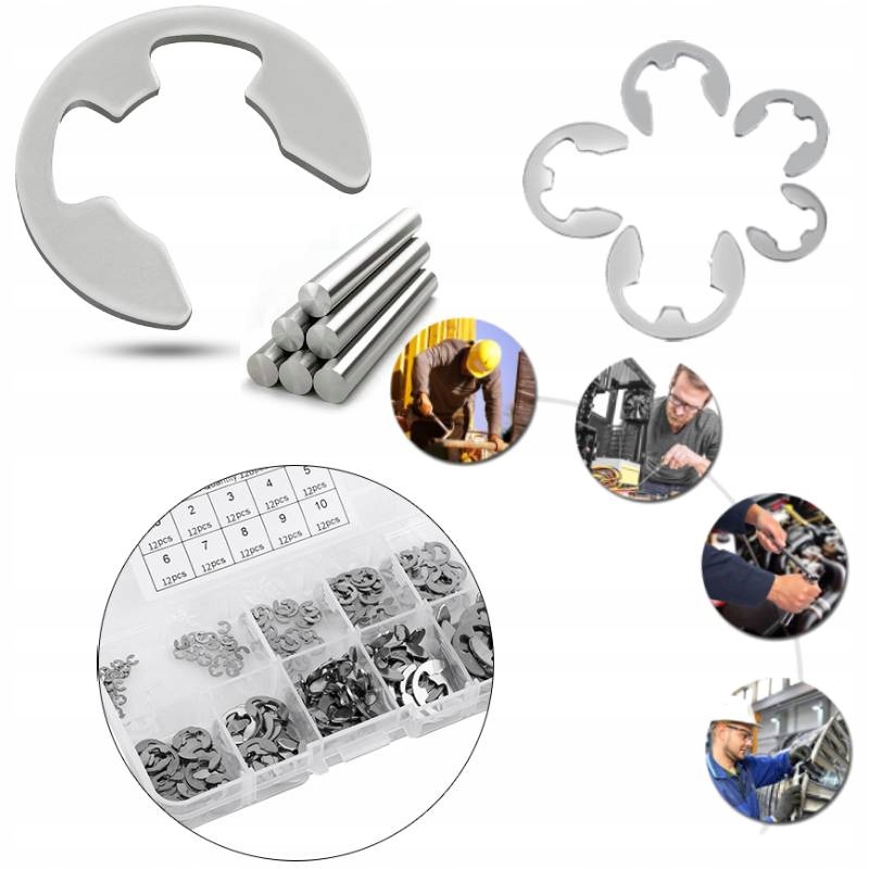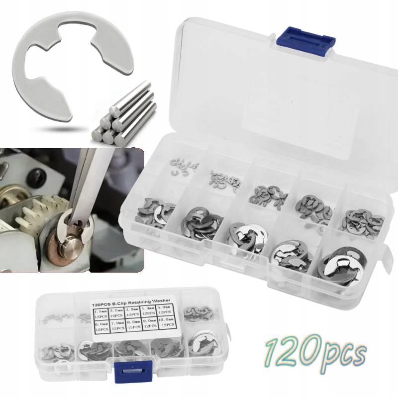 НАБОР КОЛЬЦЕВ E-CLIP SEEGERA 120 ШТ. MIX 10 РАЗМЕРОВ + ОРГАНАЙЗЕР