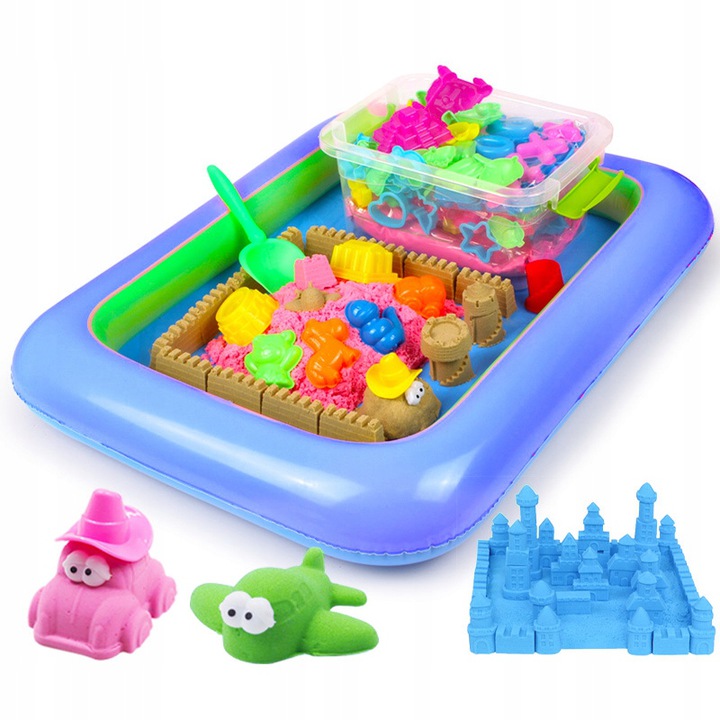 НАБОР КИНЕТИЧЕСКОГО ПЕСКА РАЗЛИЧНЫЕ ЦВЕТА ФОРМЫ ДЛЯ БАССЕЙНА ШПАТЕЛИ ПЛАСТИКОВЫЕ