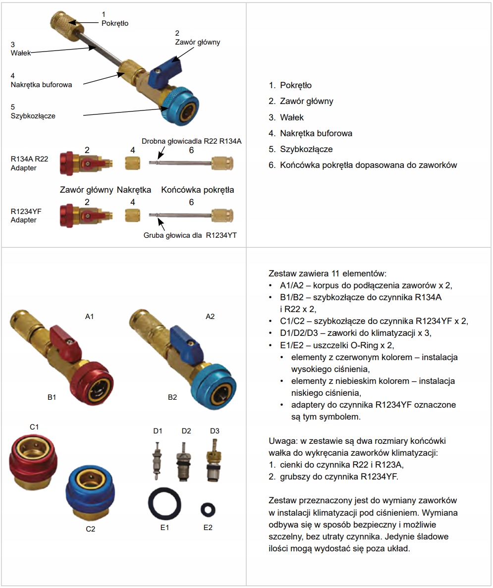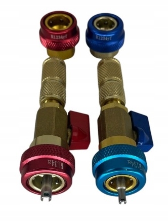 Набор включает в себя дополнительные адаптеры, благодаря тому, что у нас есть возможность работать с двумя типами факторов, такими как: r134a и 1234yf