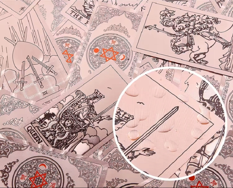 Карты, изготовленные из прочного материала из ПВХ с печатью, являются элегантными , Постоянным и удобными для использования. Эти карты являются отличным способом расслабиться, справиться со стрессом и , обнаруживая секреты Таро.
