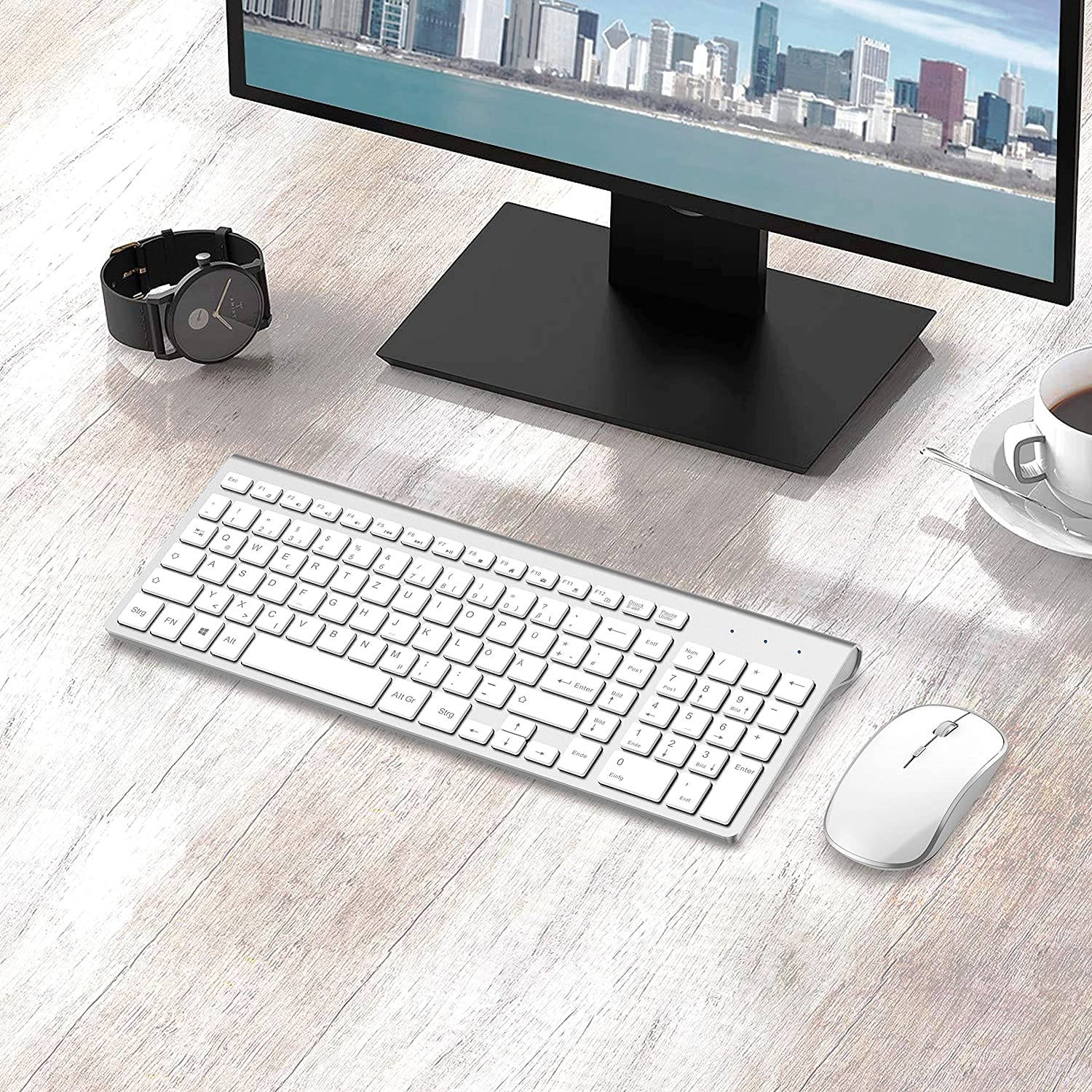 - Современный белый дизайн - беспроводная клавиатура оснащена роскошной поверхностью серебра и высококачественным ABS внутри беспроводной мыши. Беспроводная мышь имеет жемчужную белую, а также имеет гладкую поверхность с тонким серебряным краем. Идеальный набор, который сочетает в себе как красоту, так и современность.