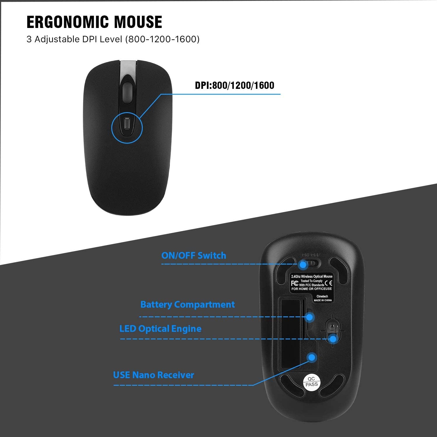 - ❤ Эргономическое обслуживание с высокой точностью: вы можете легко изменить чувствительность курсора этой беспроводной мыши в зависимости от активности, 3 регулируемых мышей с уровнями DPI (800-1200-1600), устойчивые к поту беспроводную беспроводную мыши с профилированной формой; CimeTech беспроводная клавиатура и мышь учитывают адаптацию, материал и мастерство. Клавиатура имеет угол наклона для идеального положения письма