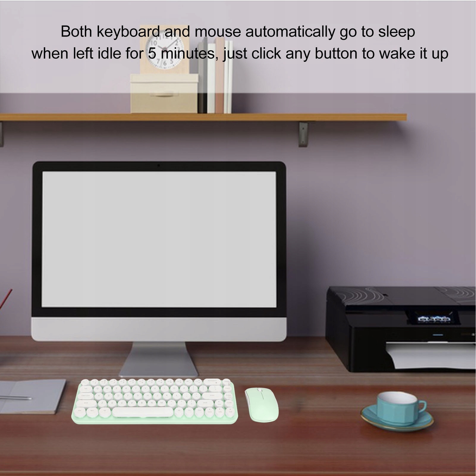 4. Питание от батареи. Беспроводная клавиатура и мышь питаются от батареи (без батарей), что обеспечивает срок службы батареи до 12 месяцев. После 5 минут бездействия клавиатура и мышь автоматически перейдут в спящий режим. Просто нажмите любую кнопку, чтобы разбудить их.