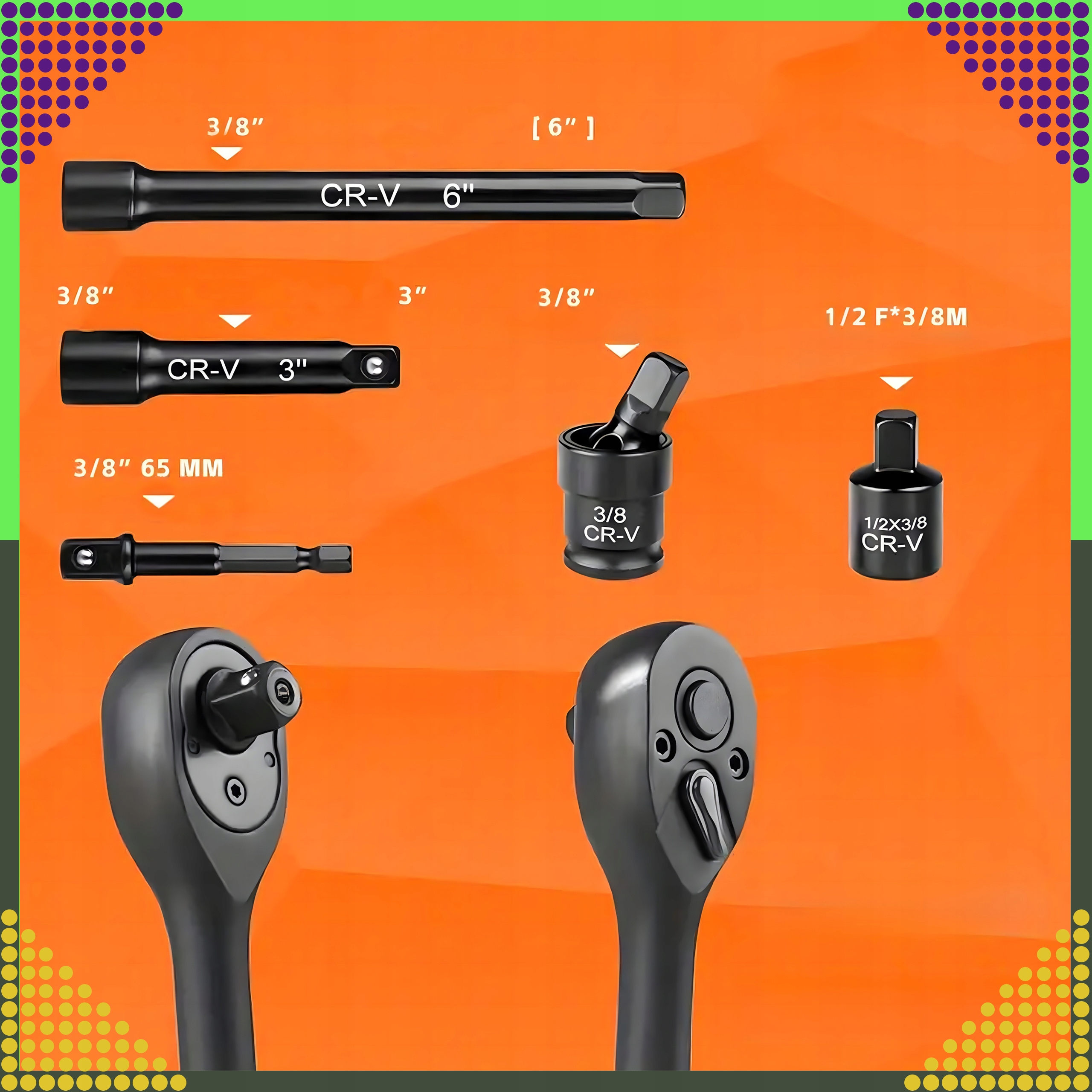 ✔️ drive: 3/8 inches ratio,