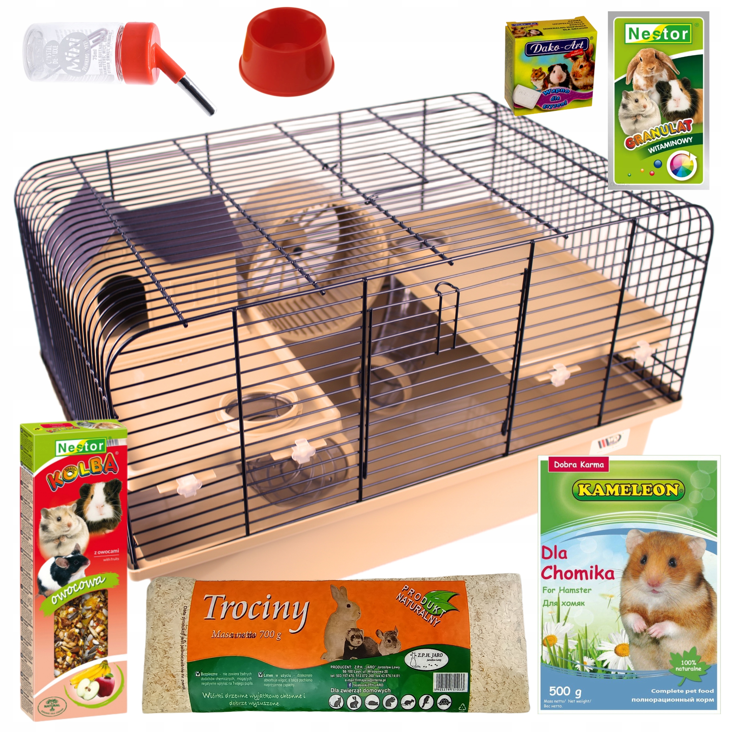 В комплект входит металлическая клетка с туалетным лотком и аксессуарами (2 этажа, 2 тоннеля, домик и катушка) цвета БЕЖЕВЫЙ (другие модели доступны на отдельных аукционах) б>и корм для грызунов (500 г), ароматизированные колбы (вкус выбирается случайным образом), кубики минерала и лайма в качестве прикорма и древесная подстилка.