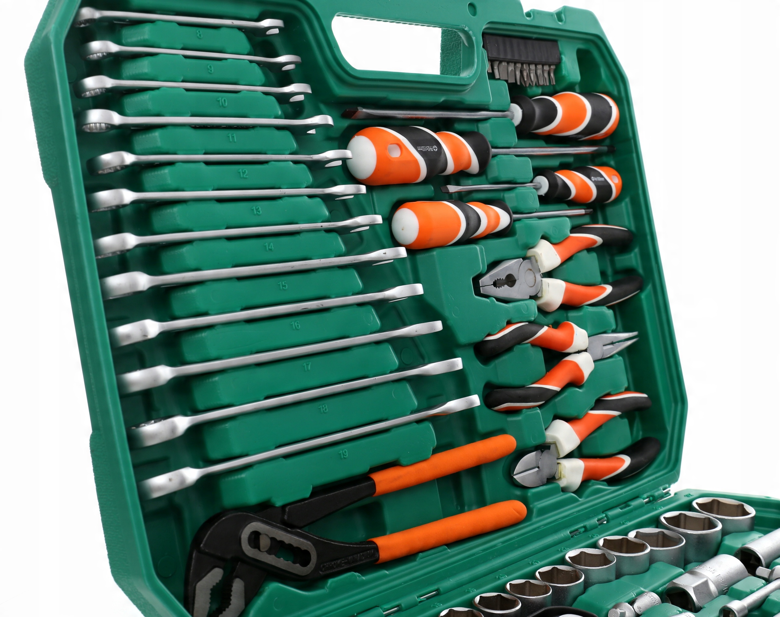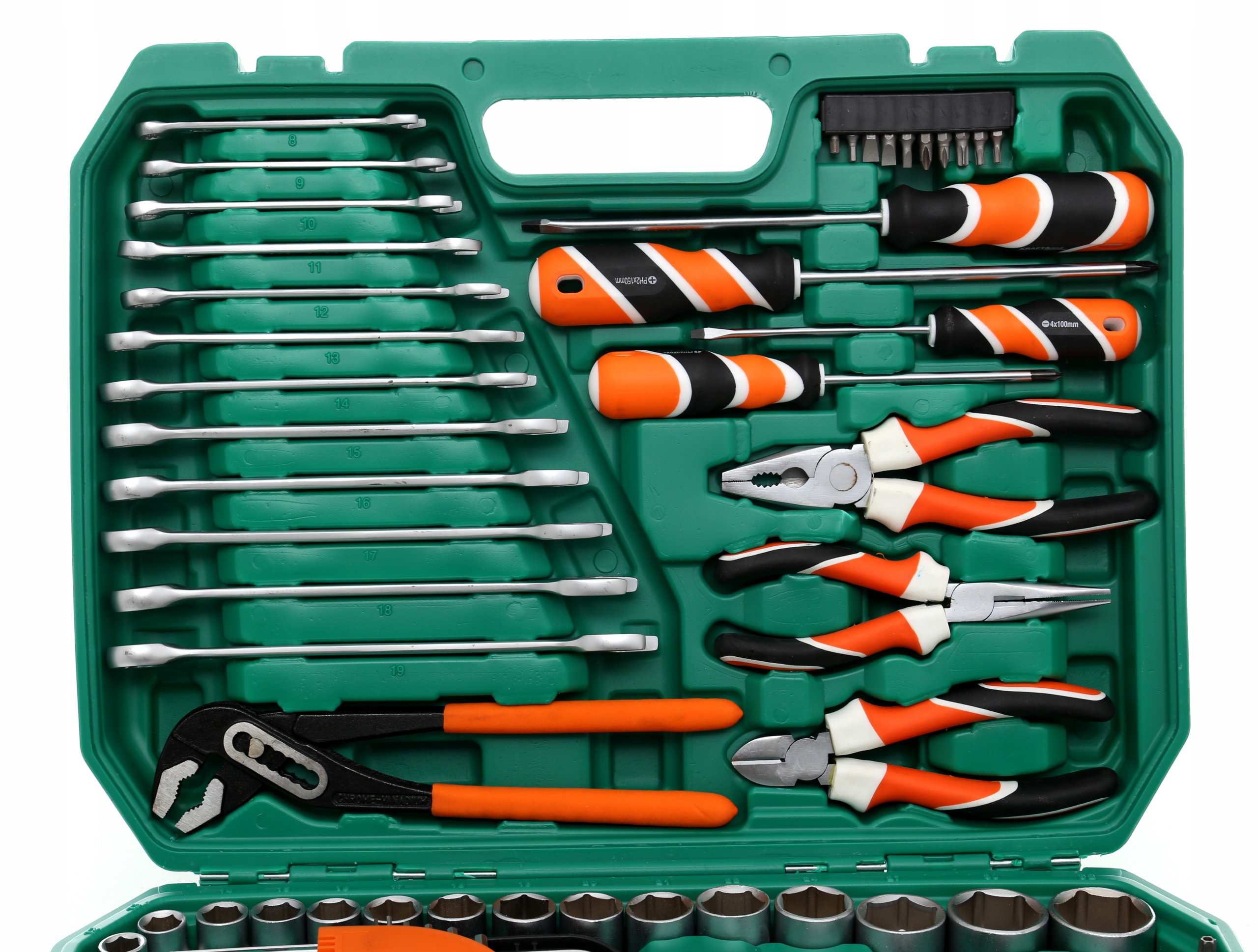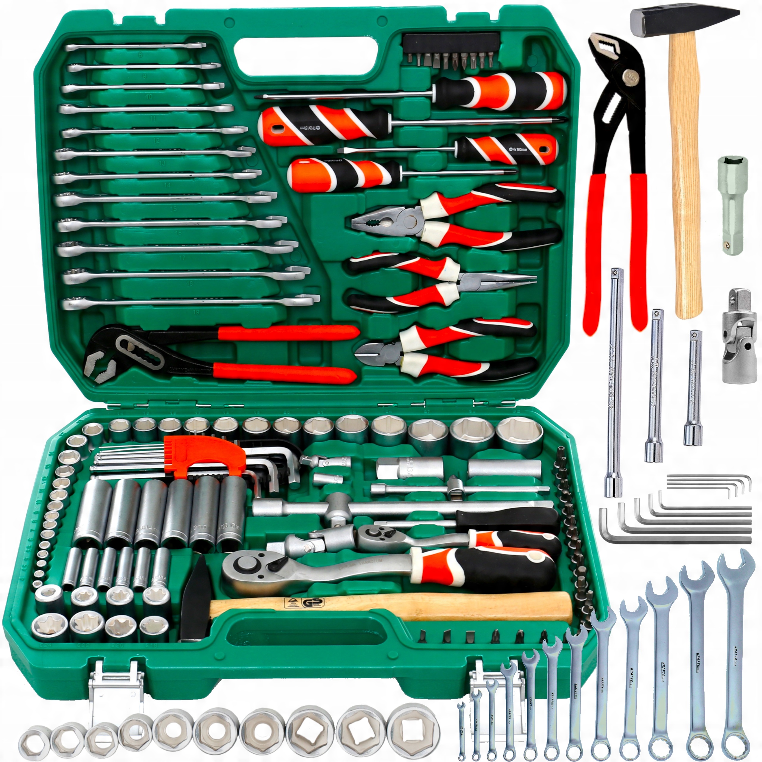 Набор торцевых ключей, торксов, шестигранных ключей, плоскогубцев и отверток модели KRAFT&DELE модели KD309 состоит из 122 элементов< /b >, изготовлен из высококачественной хромованадиевой стали.