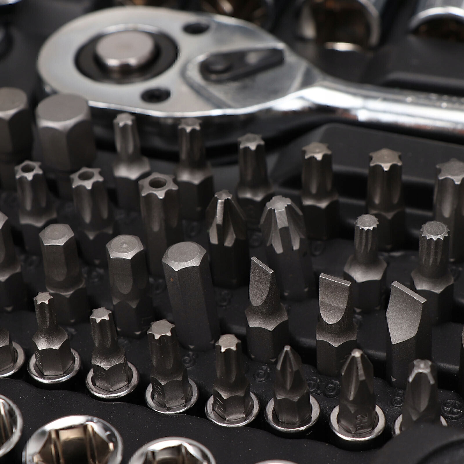 - ✅ Профессиональное оборудование: В комплект входят головки, биты, удлинители, универсальные шарниры и многое другое — все, что вам нужно.