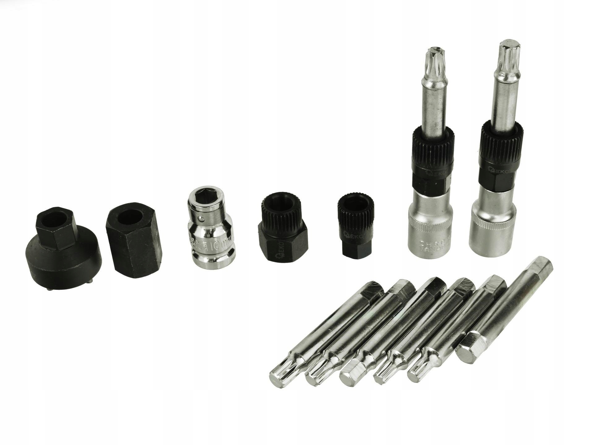 Набор ключей для сборки и разборки генераторы переменного тока. Ключи изготовлены из высококачественной хромованадиевой стали CrV, что делает их прочными и устойчивыми к повреждениям. Ключи позволяют одновременно открутить винт крепления шкива (с помощью соответствующей биты) и удержать шкив муфтой (с помощью специализированной головки).