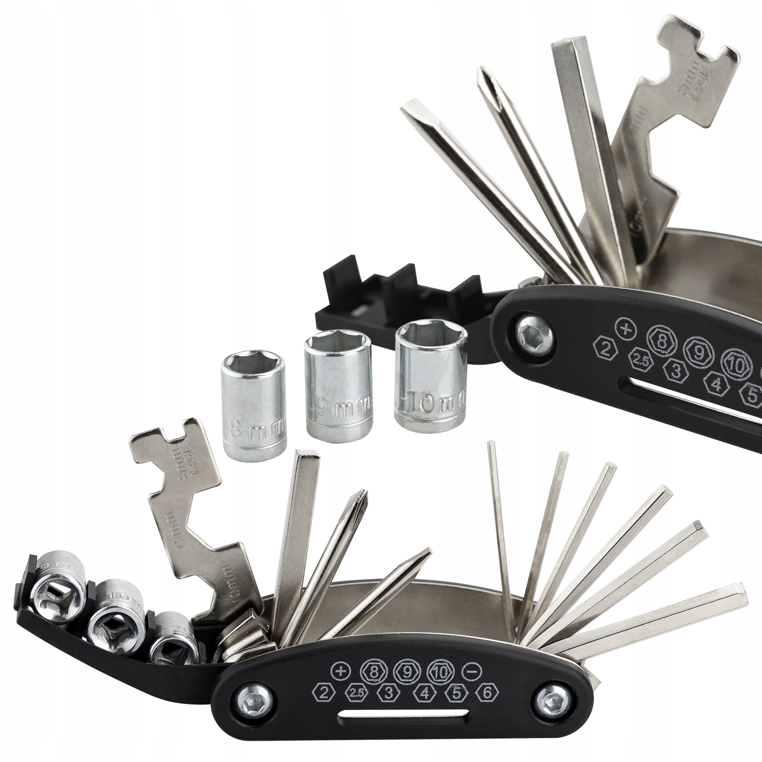 Каждый ключ изготовлен из высококачественных материалов, что гарантирует их долговечность и устойчивость к повреждениям. В комплект входят, среди прочего: плоская и крестовая отвертки, рожковые, шестигранные и торцевые ключи, а также спицевой ключ. Лезвия ключей изготовлены с высокой точностью, что позволяет легко и безопасно затягивать и ослаблять винты или гайки.