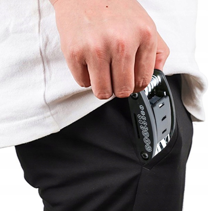 Универсальный велосипедный ключ — это продукт, который должен быть частью вашего снаряжения во время путешествия или езды на велосипеде. Благодаря небольшому размеру он поместится практически в любой карман и сумку. В набор входят 16 важнейших инструментов, предназначенных для ремонта и регулировки велосипеда. К ним относятся шестигранные ключи, отвертки, торцевые головки с переходником, а также рожковые и спицевые ключи.