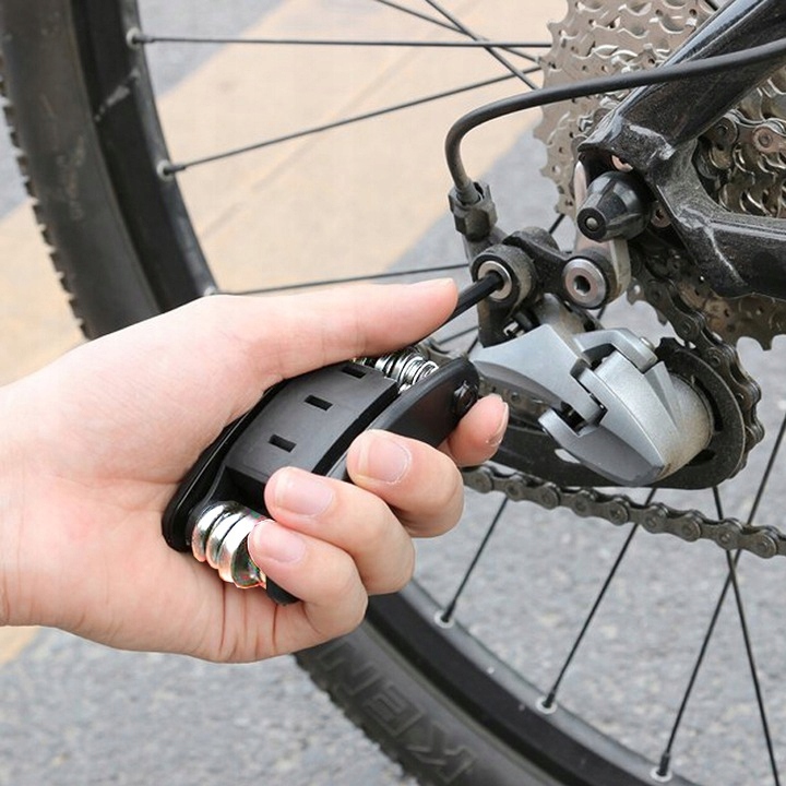 Когда вы находитесь в дороге, ваш велосипед может нуждаться в ремонте. Тогда вам пригодится комплект для ремонта велосипеда, но весь комплект обычно занимает много места и очень тяжел. Этот небольшой и легкий карманный нож будет рад вам помочь, ведь он содержит 16 ключей, наиболее часто используемых на велосипедах.